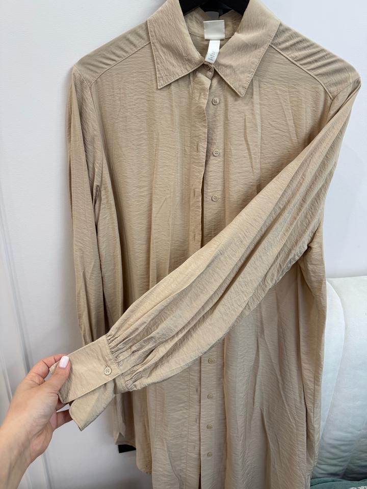 Рубашка платье легкое в бежевом цвете , можно как накидку пляжную носить Артикул: 554429
