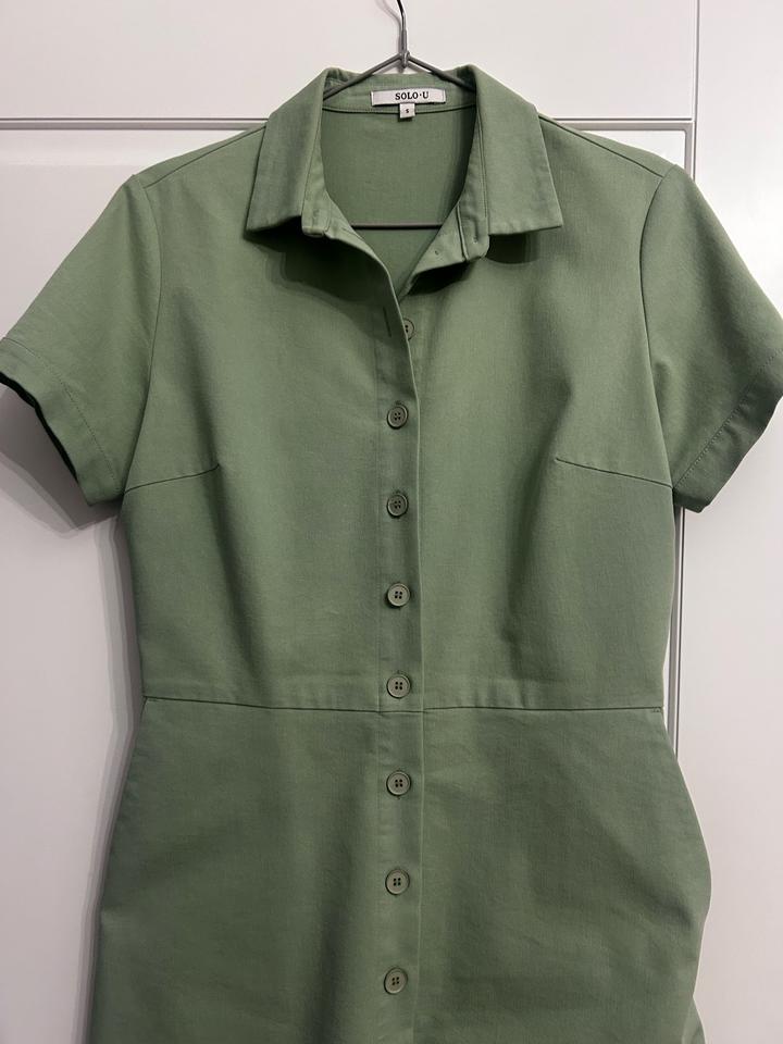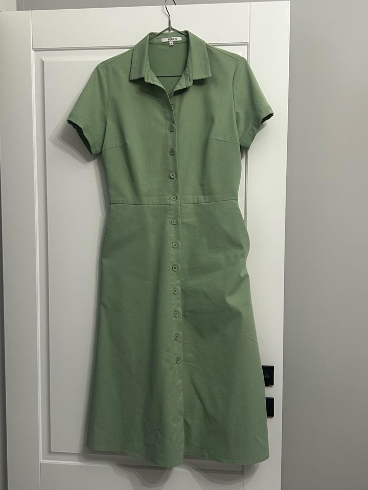Мятное платье длины миди, состав : 99% хлопок, 1% эластан. Размер - S. Боковые карманы, Фактура ткани под джинс. Артикул: 554474