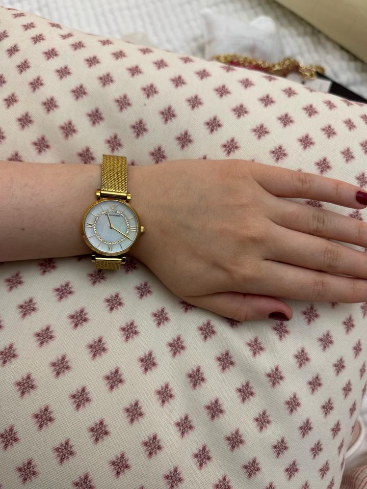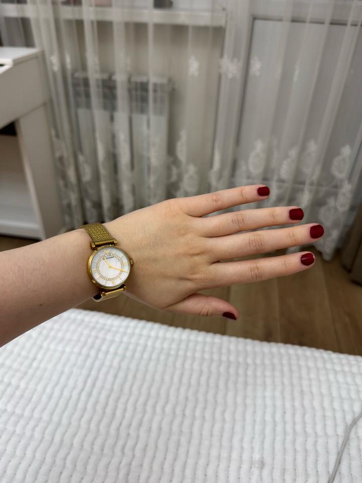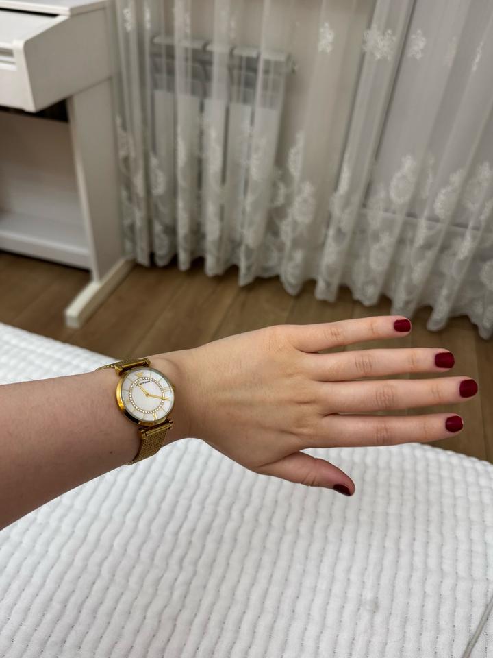 Не оригинал , но дефектов нет. Однако они не работают надо завести их. Циферблат перламутровый красиво переливается при свете. Легкие повседневные часики . В комплекте коробки нет к сожалению . Но положу в пакетик . Не чернеют Артикул: 554588