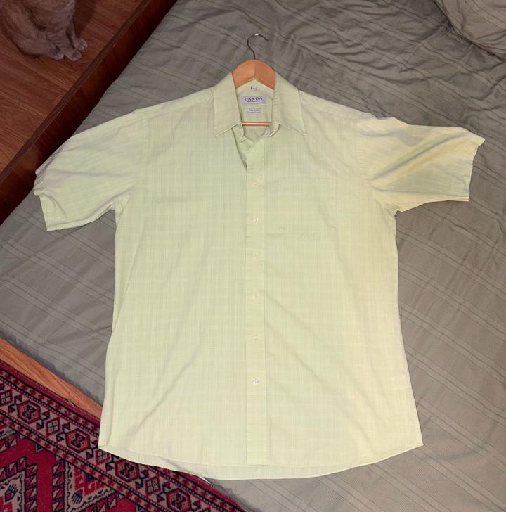 Светло зеленая non iron рубашка от бренда Canda. Очень красивая, есть немного следы носки, но их почти не видно. Можете посмотреть в карусели. Состояние - очень хорошее. Отрываю от сердца. Артикул: 554595