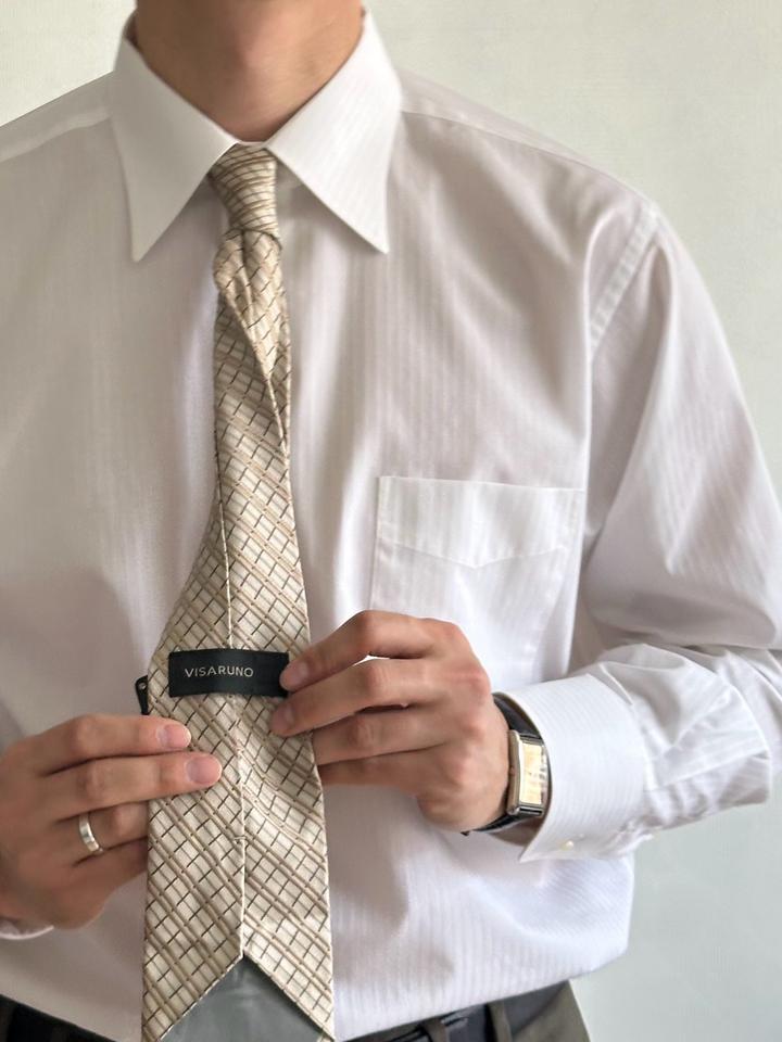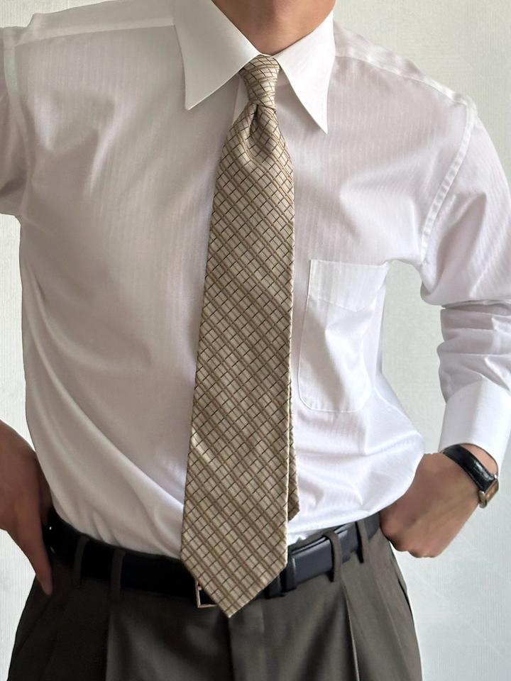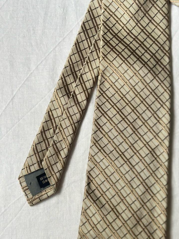 Visaruno | 8-9,5см х 150см Классический шелковый галстук в ромбик в бежевом оттенке. 100% шелк Made in Japan 🇯🇵 Состояние отличное, 10/10 Артикул: 554604