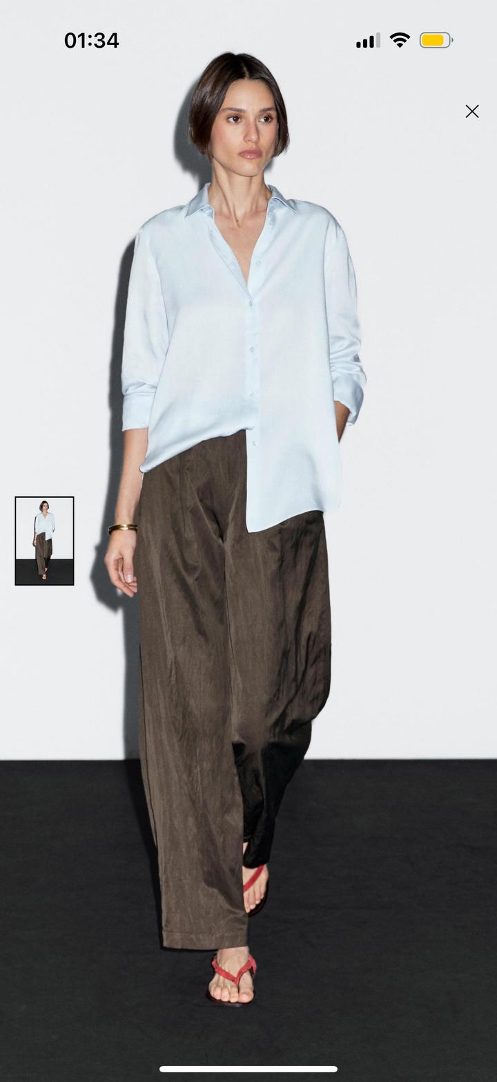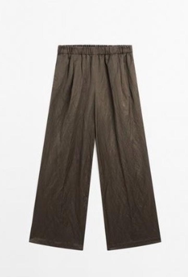 Трендовые брюки из жатой плотной атласной ткани в шоколадном цвете . На резинке, что удобно . Размер 42 Л Артикул: 554908