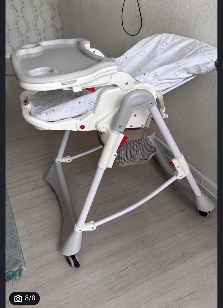 Ұл балаға және қыз балаға арналған тамақтанатын стол. Өте ыңғайлы жатқызуға да болады отырғызуға да болады. Әр түрлі положенияға қоюға бола, аяқтарымен жылжиды яғни әр бөлмеге апауға болады еще артына ойыншықтар салуға да болады, отырғанда құлап кетпес үшін байлап қоятын ремені бар астына төсеп қоятын көрпешесі бар Артикул: 554921