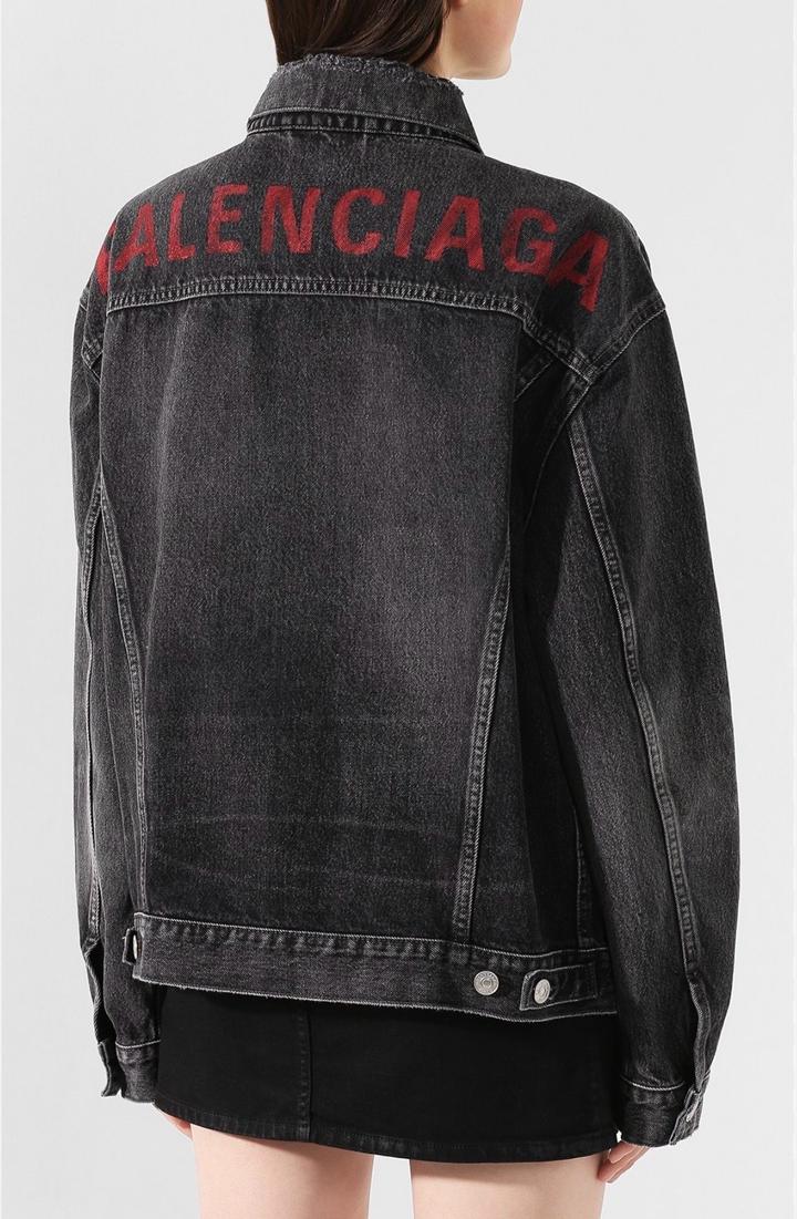 Джинсовая куртка Balenciaga с красным логотипом на спине Артикул: 555059