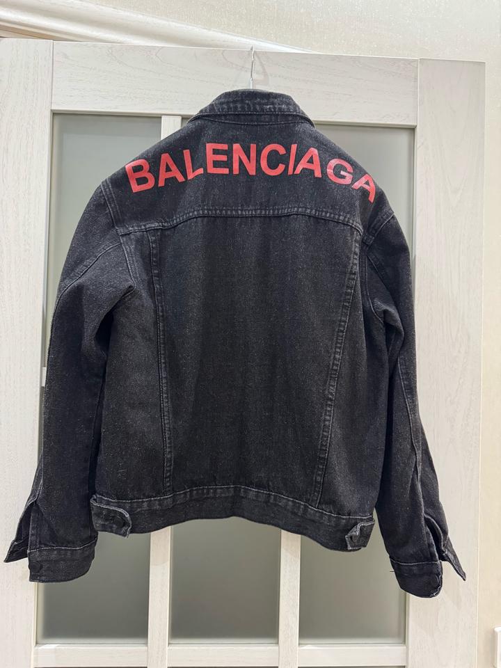 Джинсовая куртка Balenciaga с красным логотипом на спинеS/M