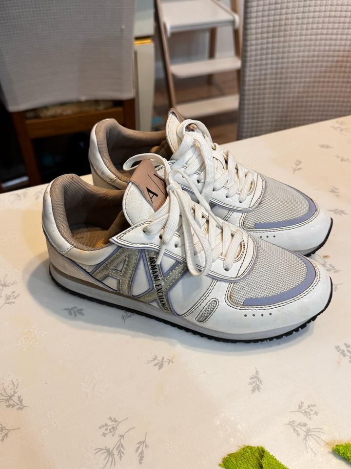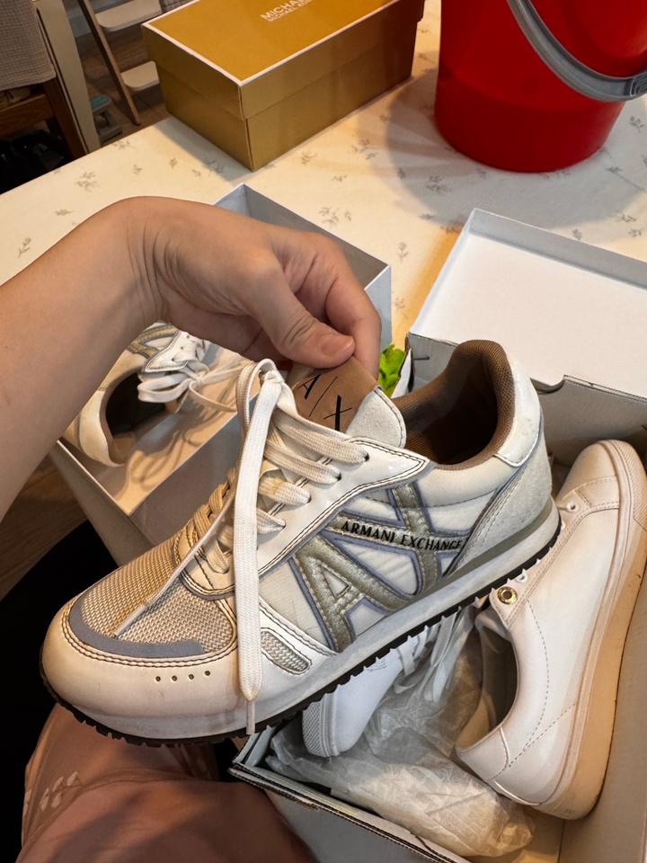 белые кроссовки: armani exchange в идеальном состоянии, 2-3 раза носки. Us 6 размер, подойдет на 36-5, 37 размер, 23 см Артикул: 555066