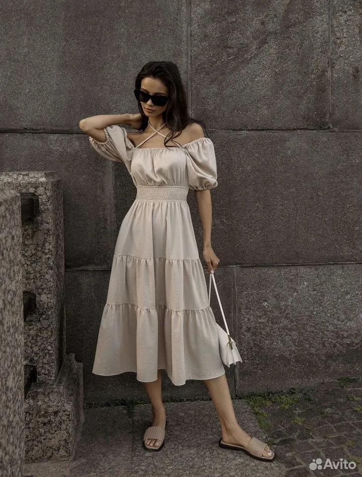 Состояние идеальное, пару выходов только. В составе есть хлопок. Красивое летнее платье💛 Артикул: 555095