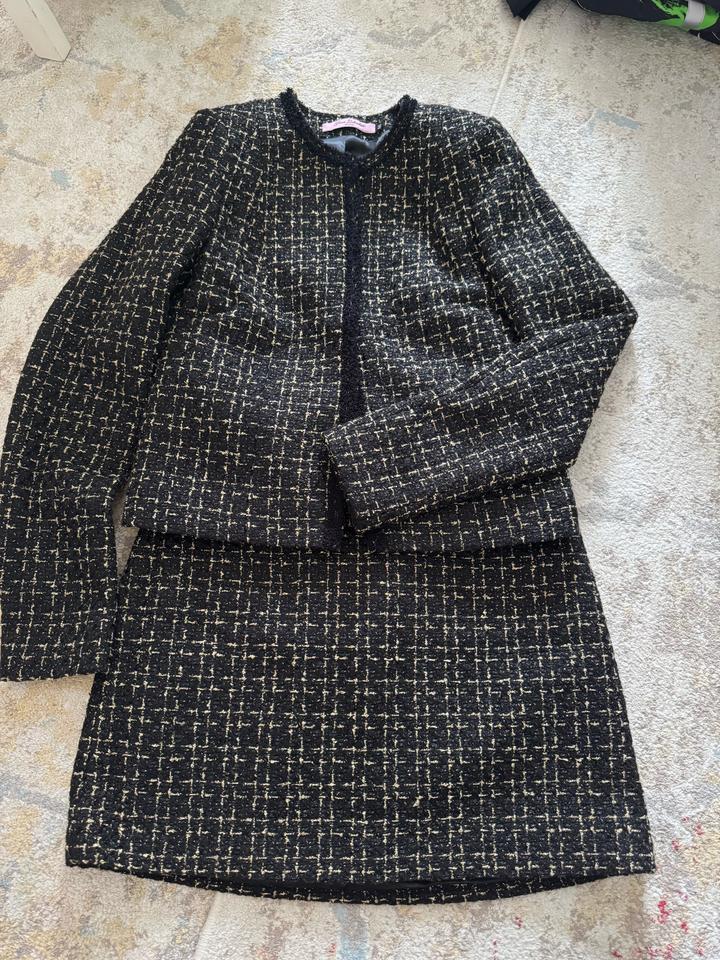 В отличном состоянии пиджак +юбка. Б/у. Подходит для 44 размера. Покупала в Москве. Артикул: 555124