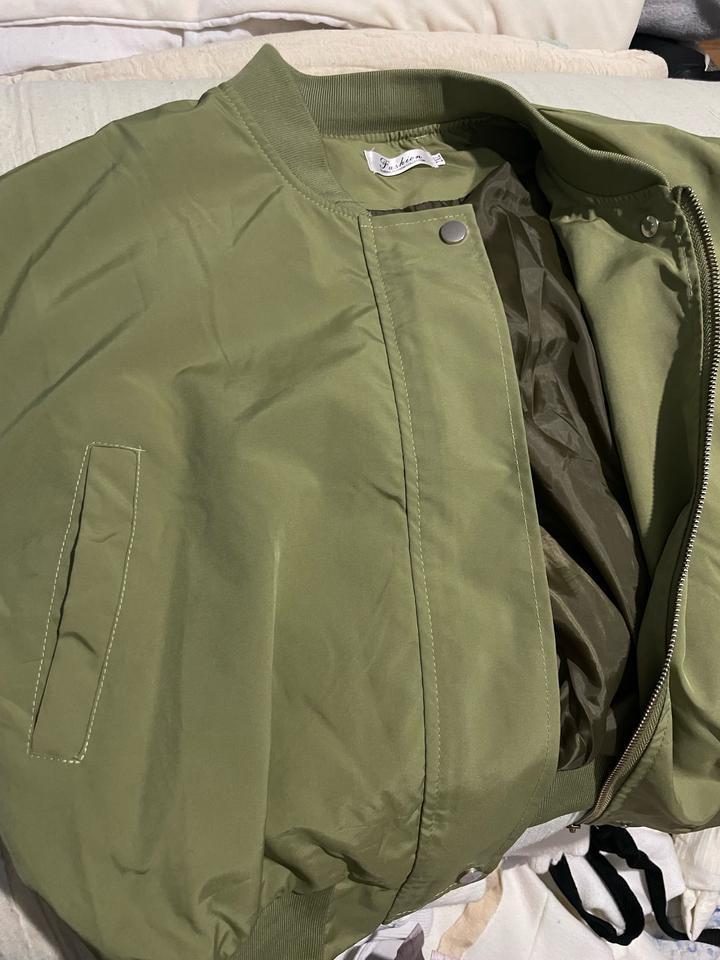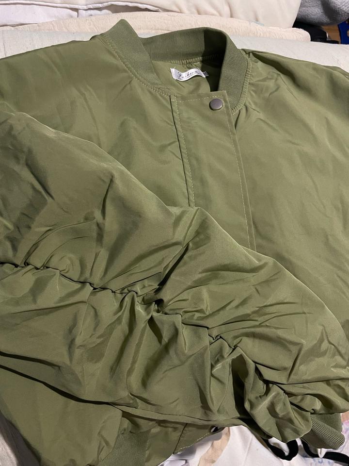 Укороченный бомбер зеленый, легкий осенний, размер L Артикул: 555125