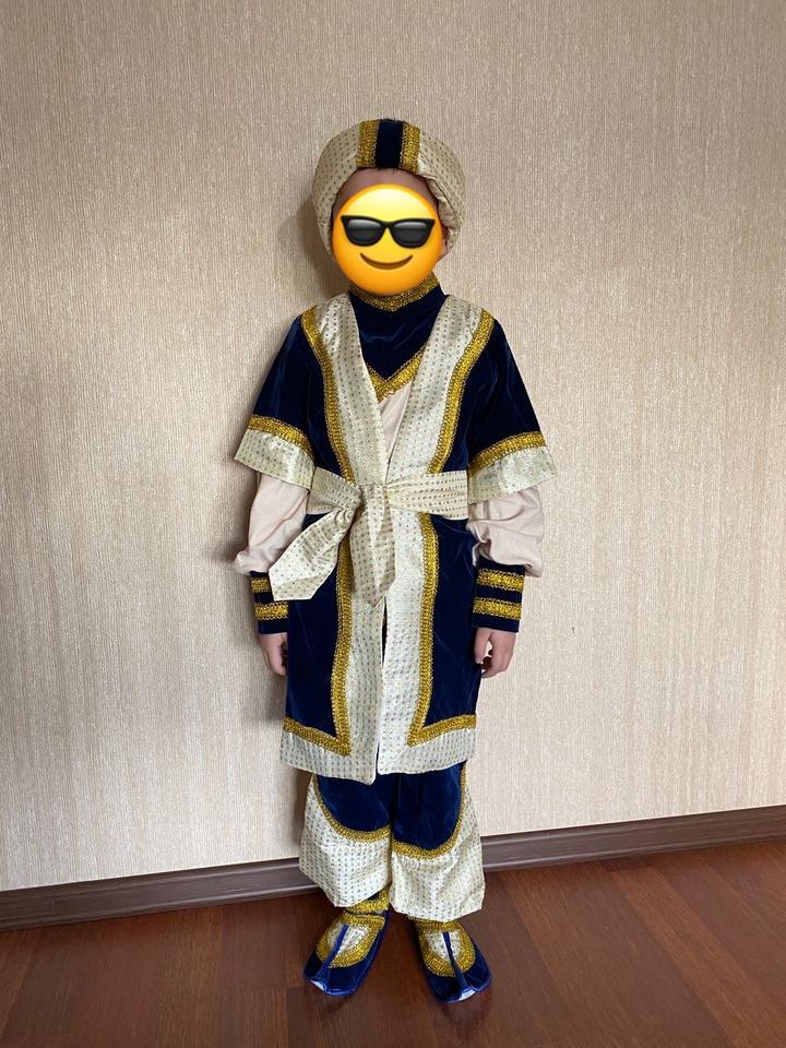 маскарадный костюм Падишаха, на ребенка от 5 лет и старше. Костюм очень хорошего качества в отличном состоянии. В комплекте кофта, штанишки, накидка, пояс, тюрбан и обувь. Артикул: 555153