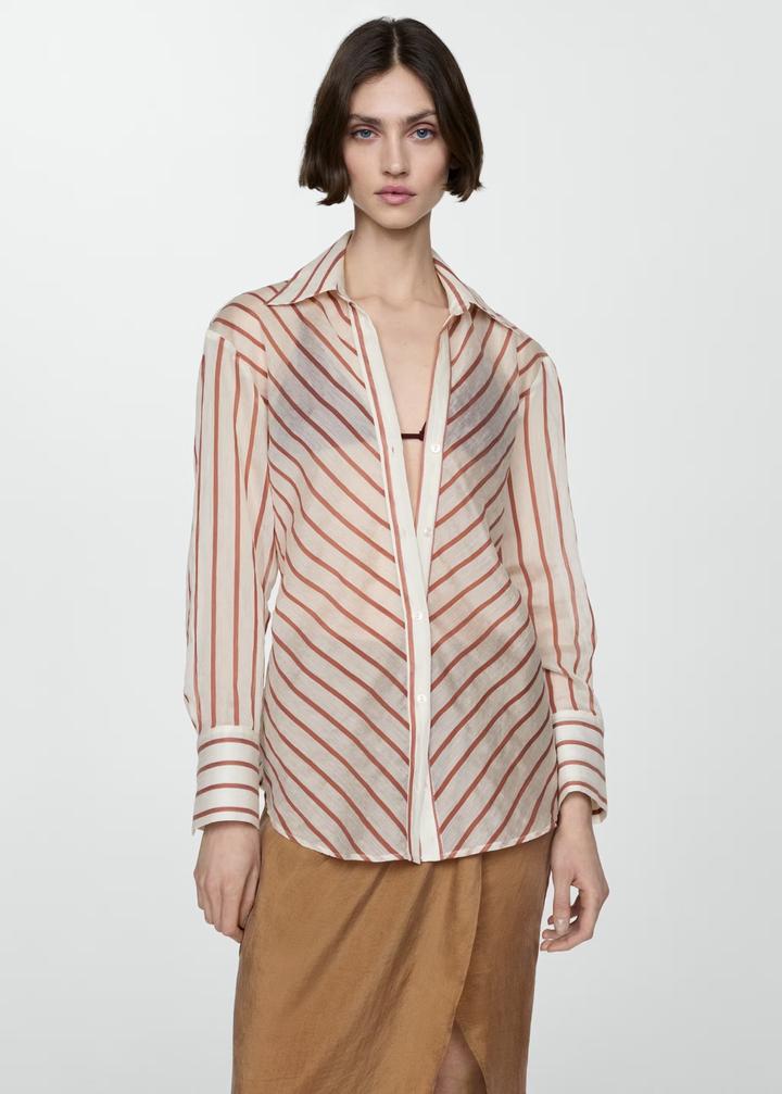 Полупрозрачная рубашка Mango 🤍 Лёгкая, воздушная, очень красиво смотрится на теле Можно носить как рубашку или как второй слой Подойдёт под офис и на лето Артикул: 555170