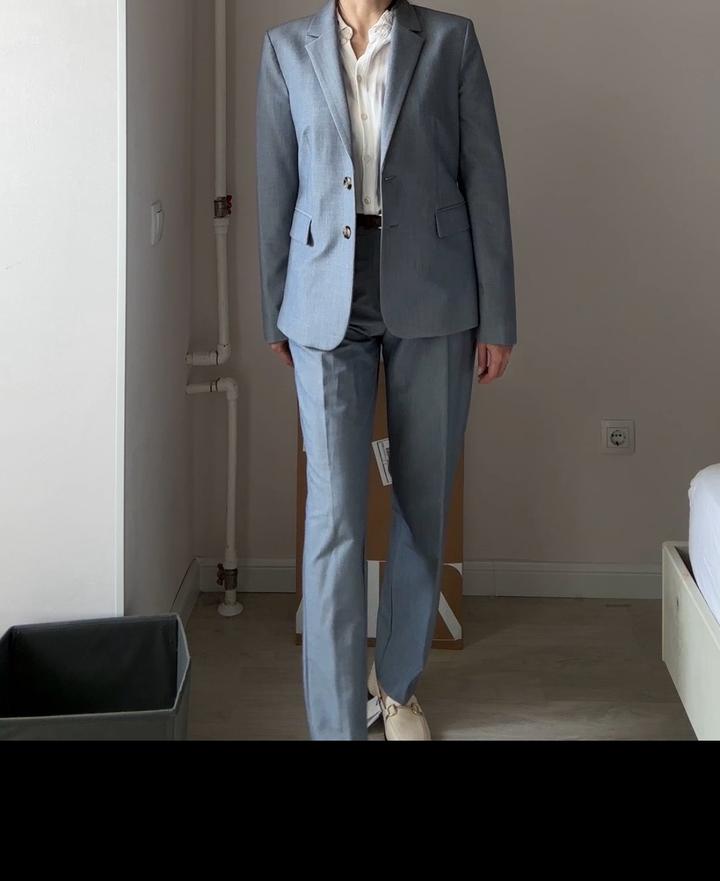 Очень аккуратный деловой костюм в идеальном состоянии. Покупала намного дороже. Идеален для офиса, встреч и просто стильных образов с джинсами и брюками. В составе лен - идеально для весны и лета. ✔ пиджак + брюки ✔ красиво сидит по фигуре ✔ легко комбинируется с базовыми вещами Артикул: 555188