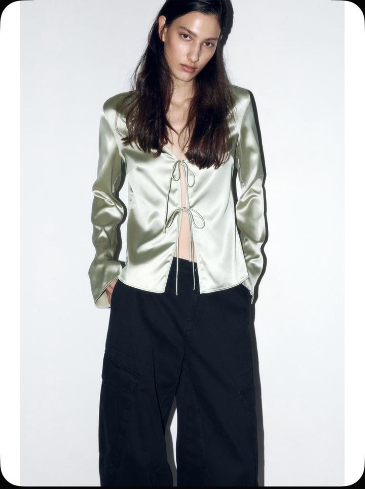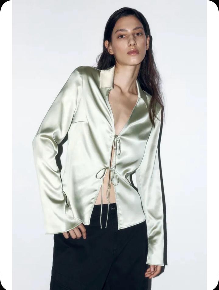 новую атласная блузу на завязках цвет зеленый новая с этикеткой размер не подошел Артикул: 555214