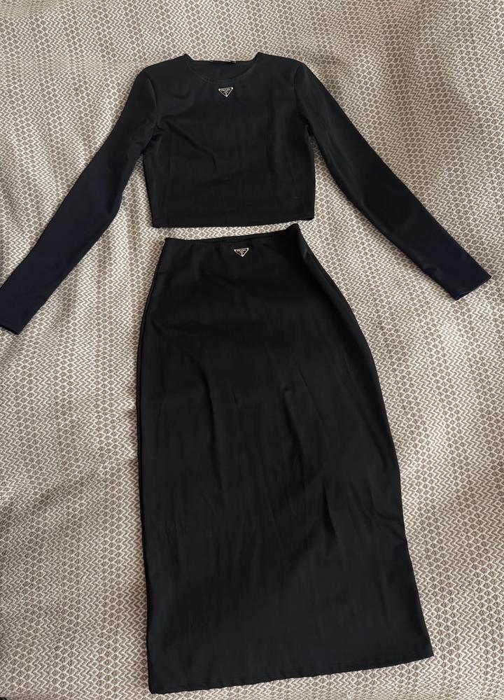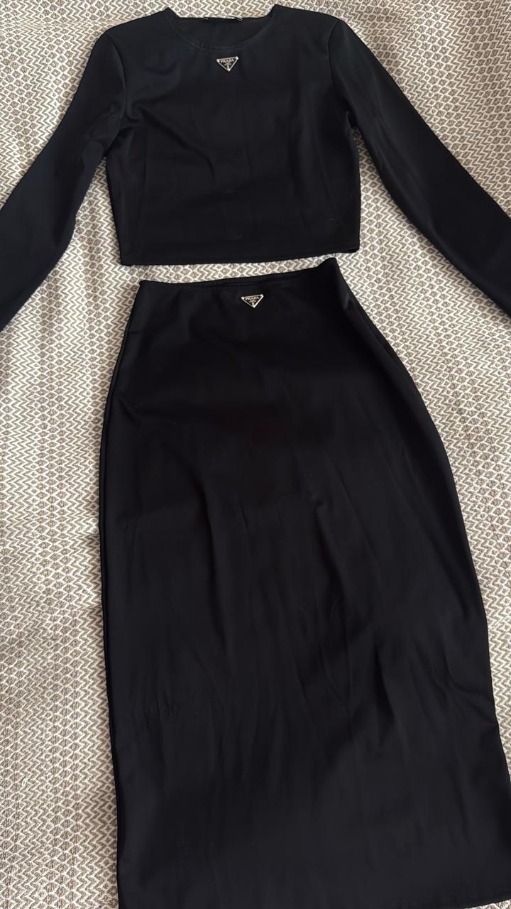 Продам черный костюм двойку , топик с юбкой , в хорошем состоянии б/у Размер xs-s Артикул: 555227