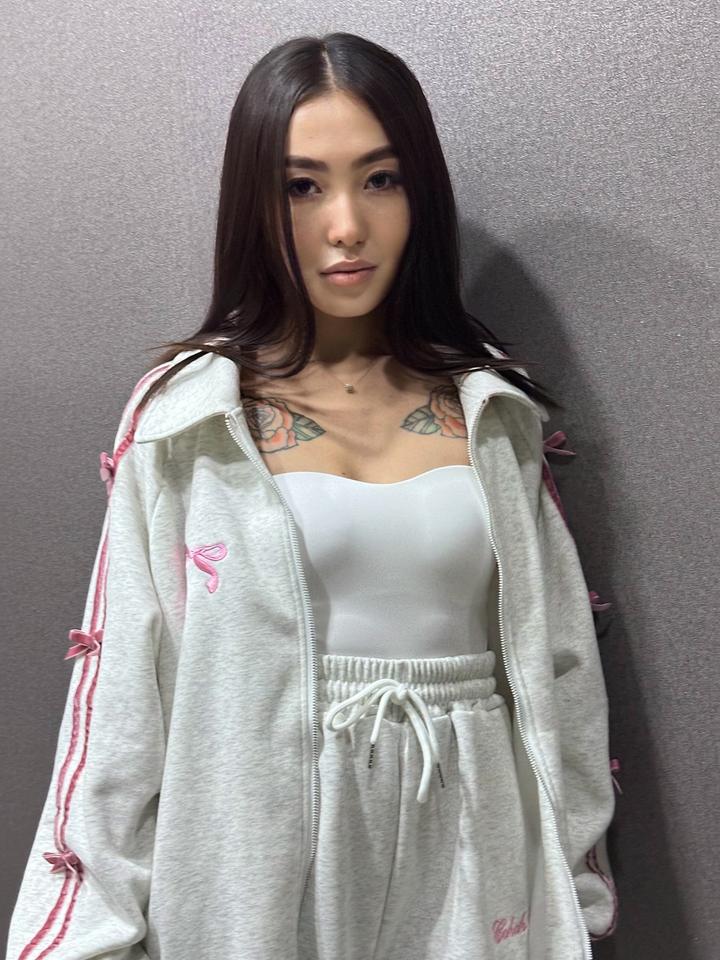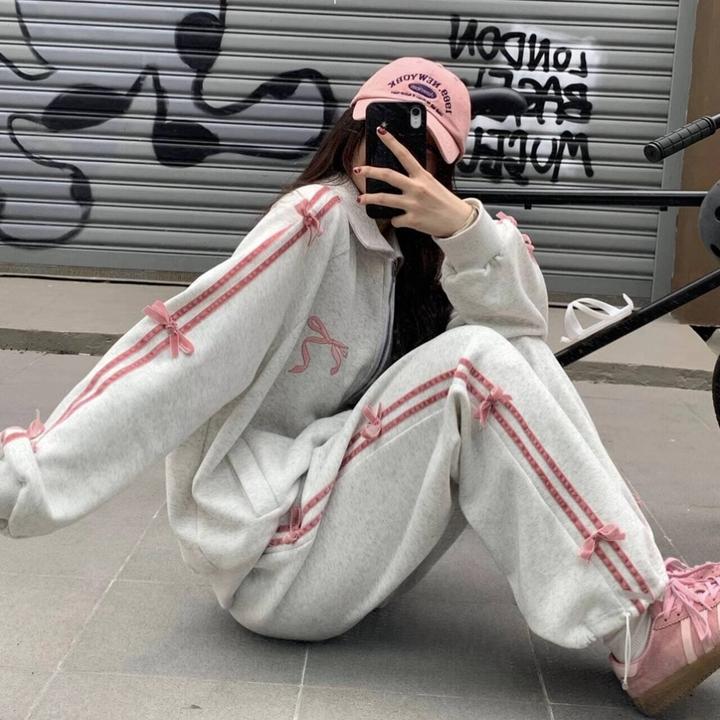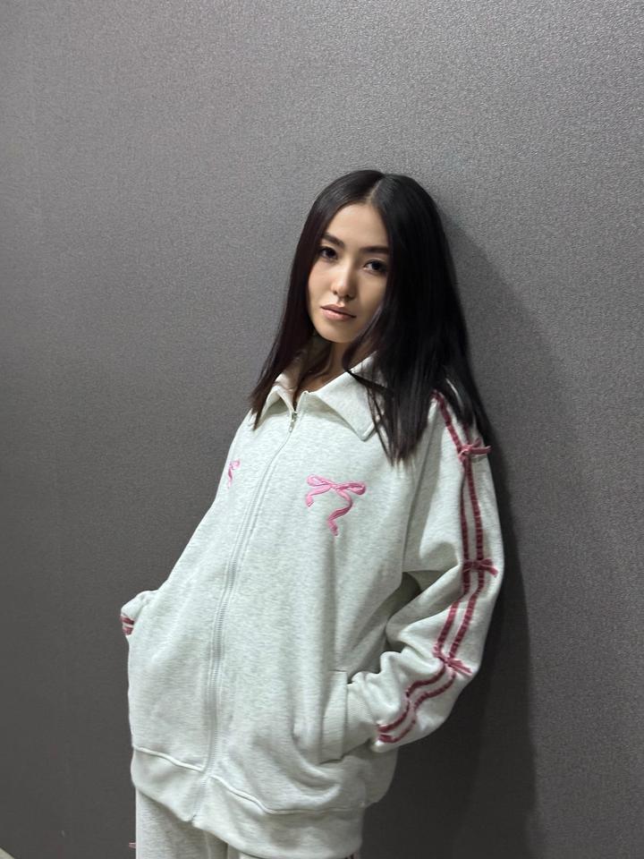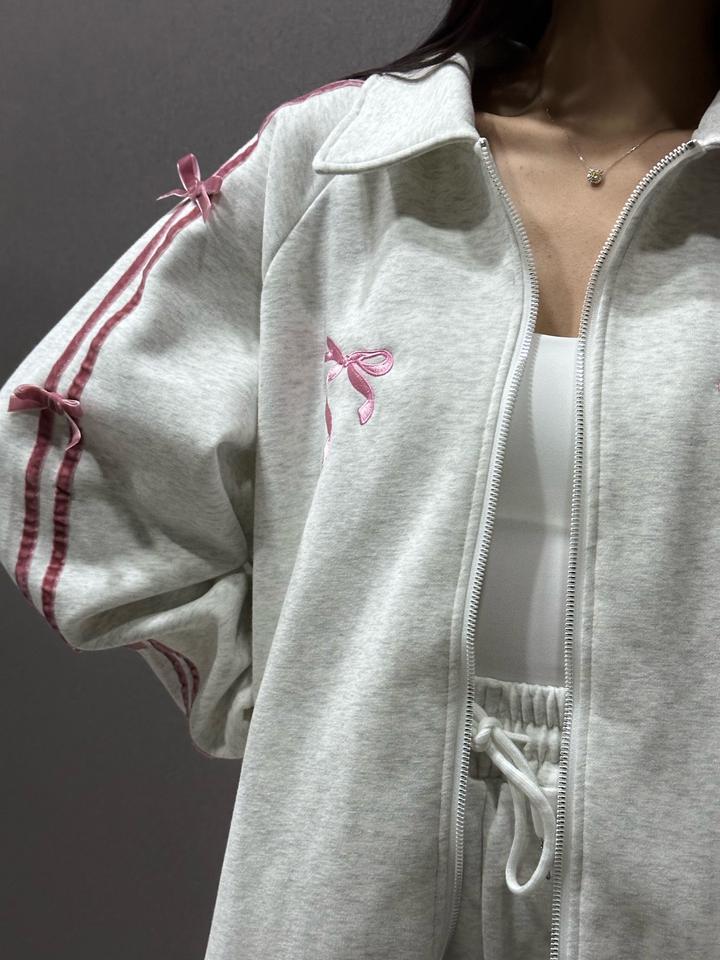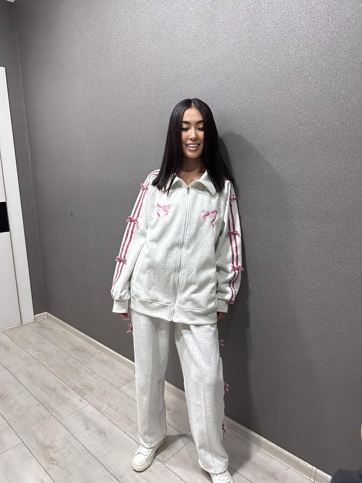 Двойка на весну - лето, серый меланж с бархатными бантиками, без утепления, новая, снизу есть кулиска. Артикул: 555267