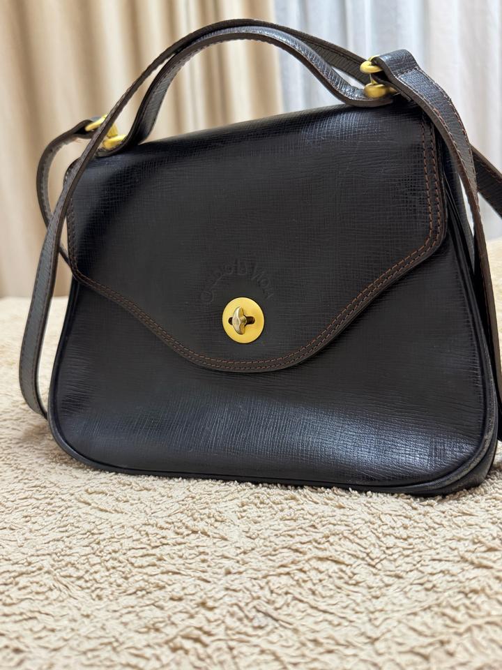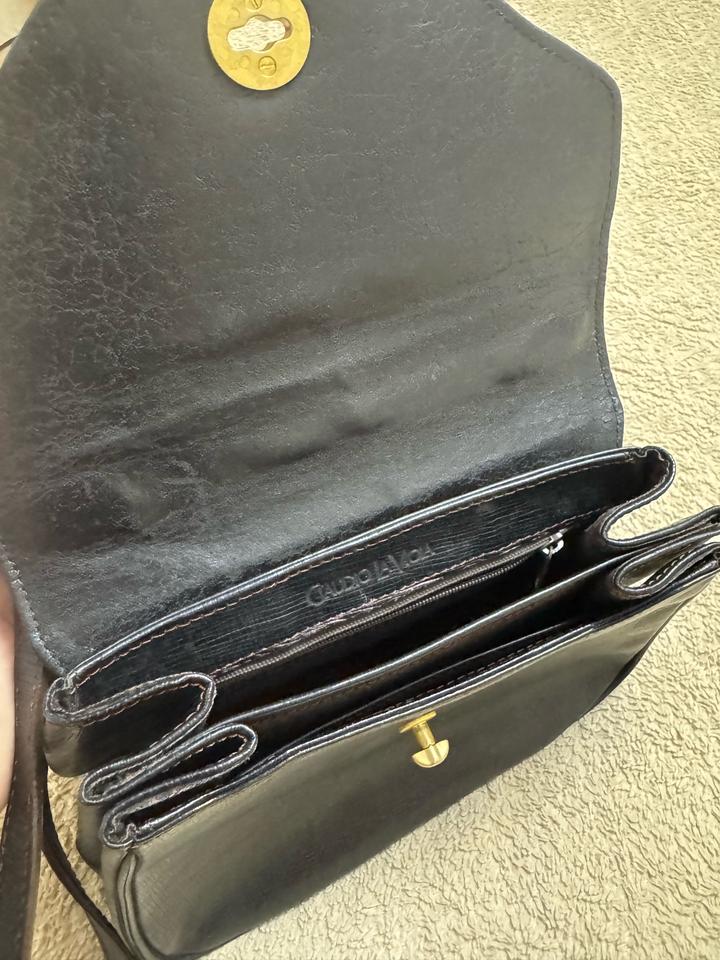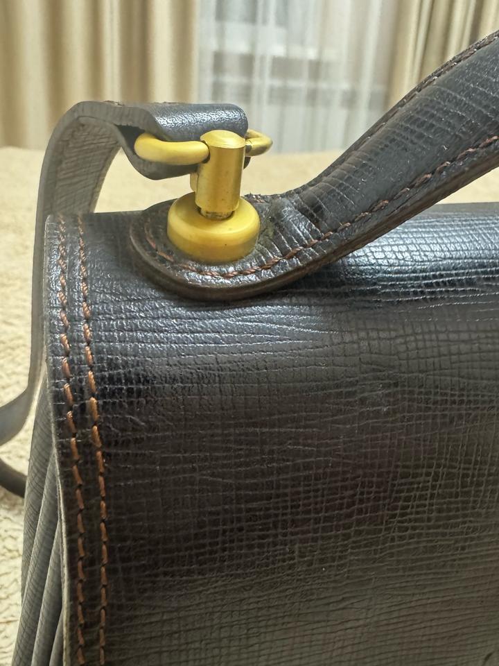 Сумка имеет короткую ручку и длинный ремешок для ношения на плече. Учитывая возраст, на сумке присутствуют естественные следы использования (незначительные потертости на фурнитуре и коже), которые не портят вид, а лишь подтверждают её аутентичность и придают особый ретро-шарм. В целом состояние очень хорошее, кожа ухоженная, швы целые, внутри чисто. Артикул: 555323