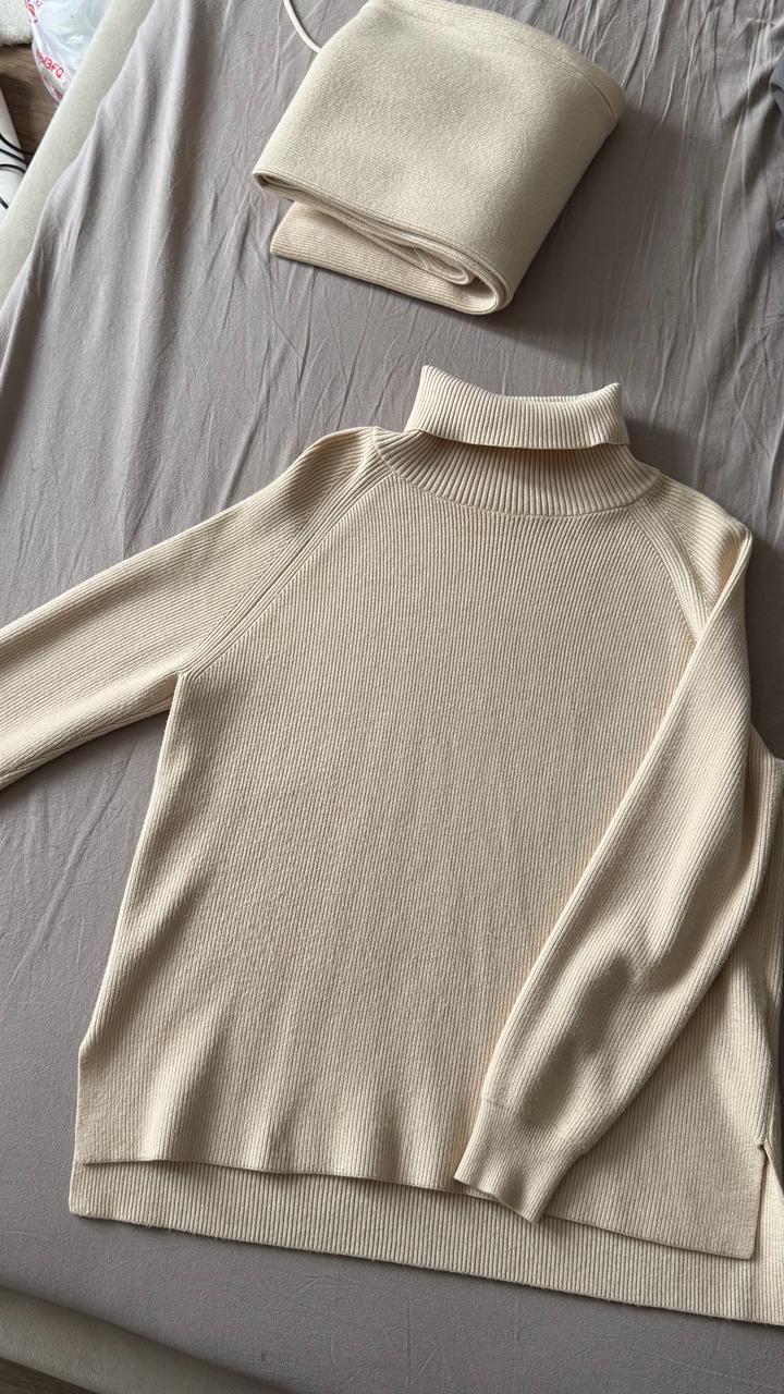 Двойка российского бренда Dilidi. В очень хорошем состоянии тёплого молочного цвета. Подойдет от xxs до s Артикул: 555357