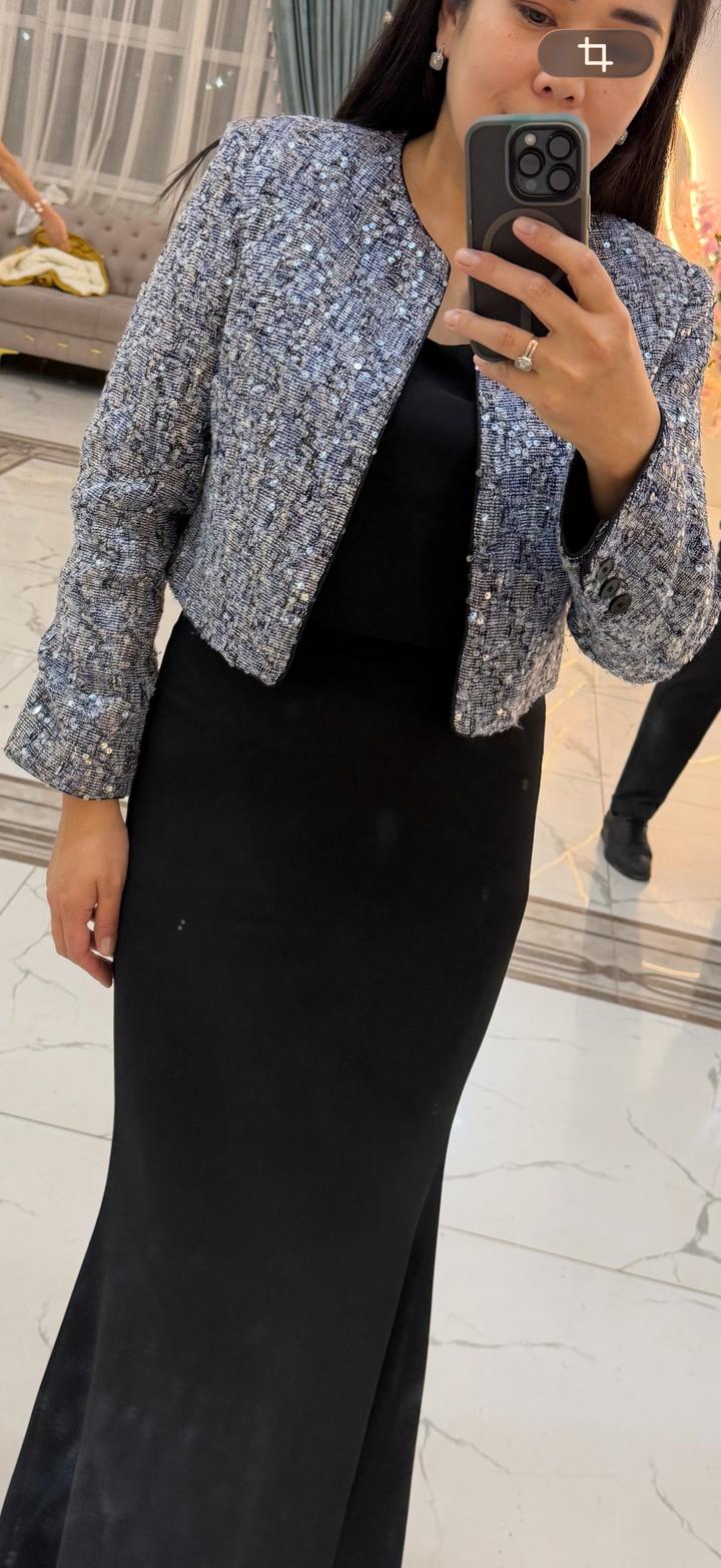 Серебристый пиджак с пайетками в размере М в идеальном состоянии одевалось 1 раз. Без дефектов. Кпзахстанский бренд Артикул: 555358