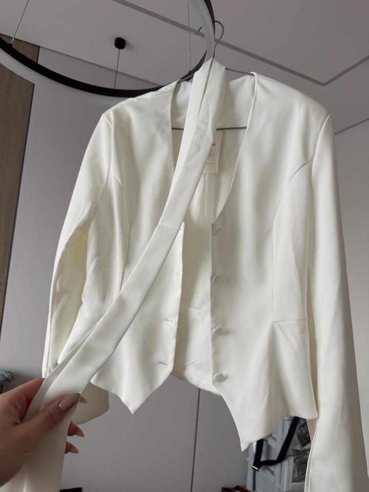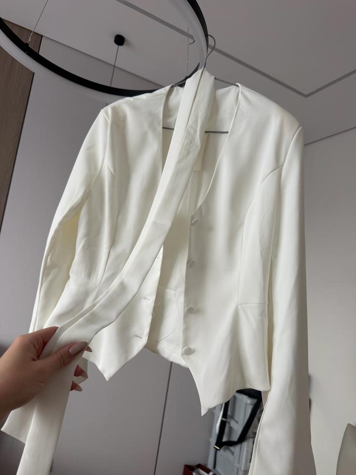 Белый пиджак размер Л , Несмотря на то что у меня размер М, взяла размер Л так как большая грудь, Ни разу не надевала новый, Забирайте по хорошей цене Артикул: 555384