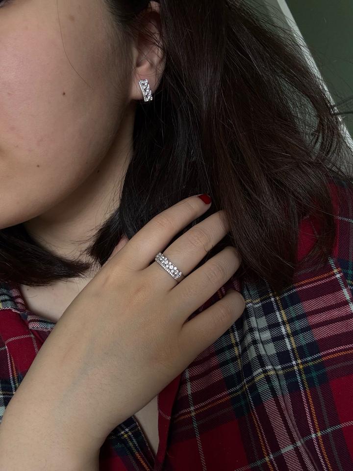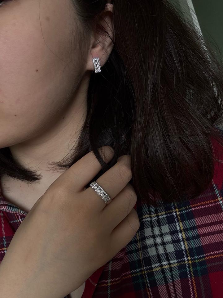 Очень красивый набор. Выглядит нежно и красиво. Правда с застежкой надо немного прилавчиться а так очень красиво. Размер кольца 17 Артикул: 555405