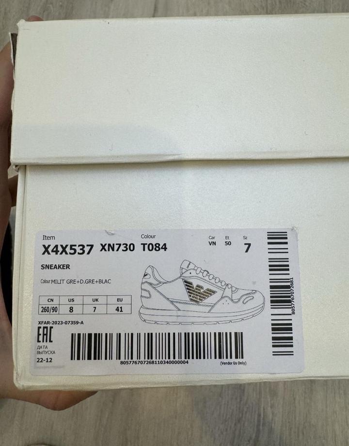 В хорошем состоянии, мужские кроссовки emporio armani Оригинал, в носке были мало, от машины до машины. Состояние практически идеальное. Размер 41 Артикул: 555416