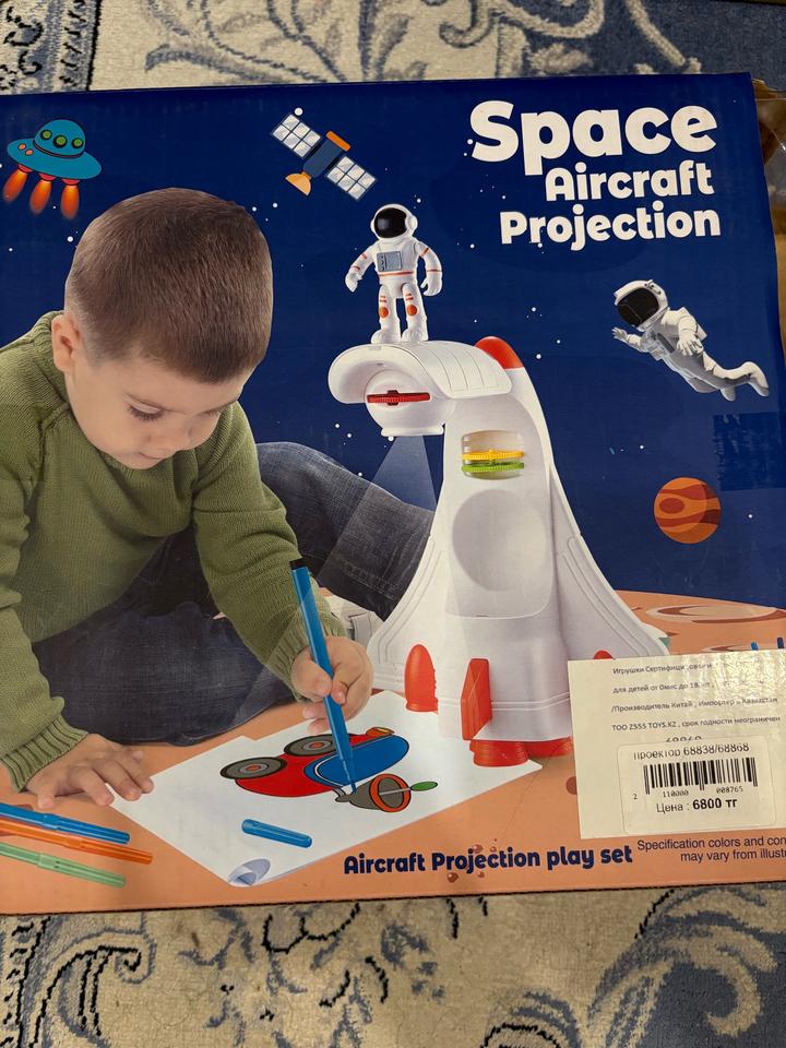 Проектор на тему космос. В комплекте четыре диска для отображения картинок, которые нужно обвести и раскрасить. Фломастеров уже нет. Легко докупить. Коробка целая. Батарейки новые. Детям не зашло. Открыли, посмотрели и убрали. Уже без торга Артикул: 555486