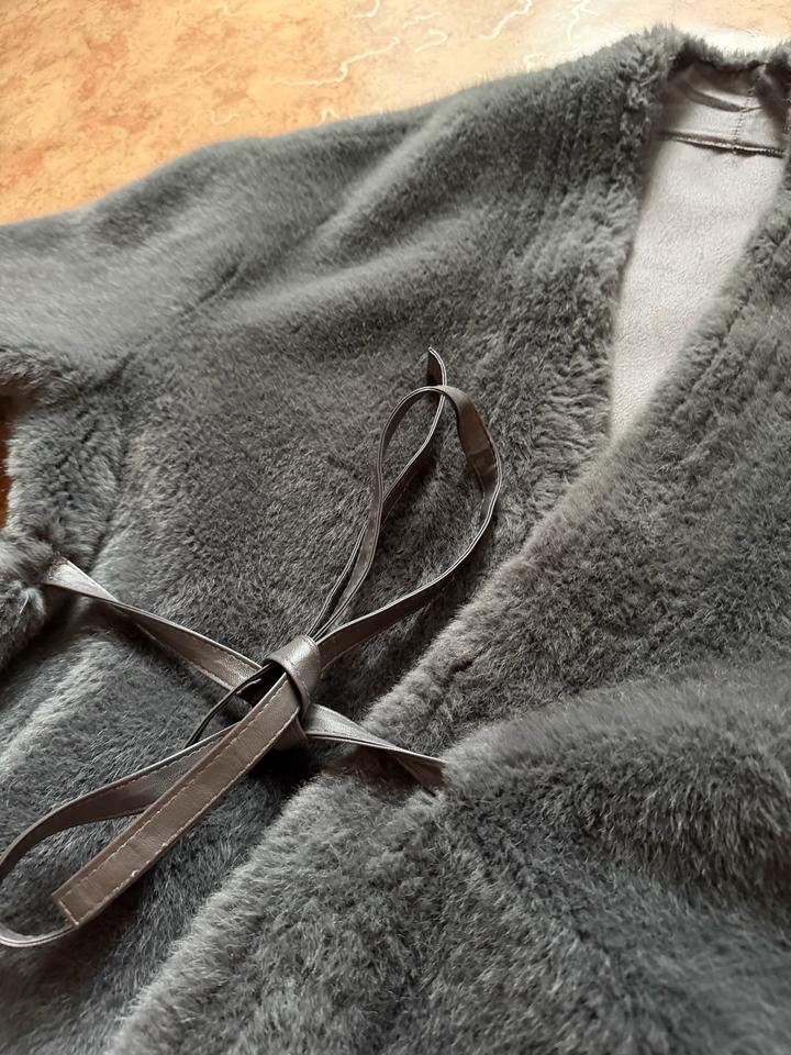 Серая меховая накидка. Теплая, выдерживает теплую зимнюю погоду Алматы. В хорошем состоянии. Артикул: 555488