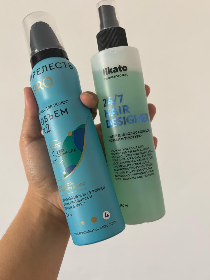 Мусс от Прелесть Pro и солевой спрей от Likato. Купила, чтобы делать объем, но так и не научилась ими пользоваться. Флаконы практически полные, по одному затесту. Отдаю намного дешевле, чем в магазине. Цена за двоих 2700 Артикул: 555532