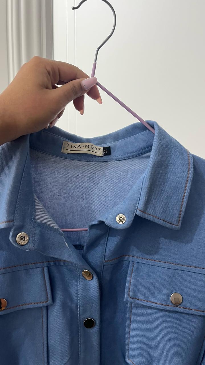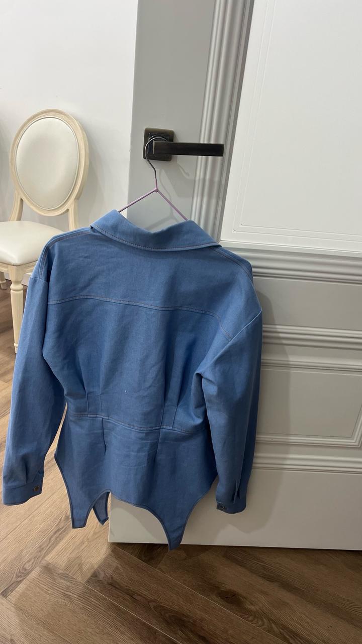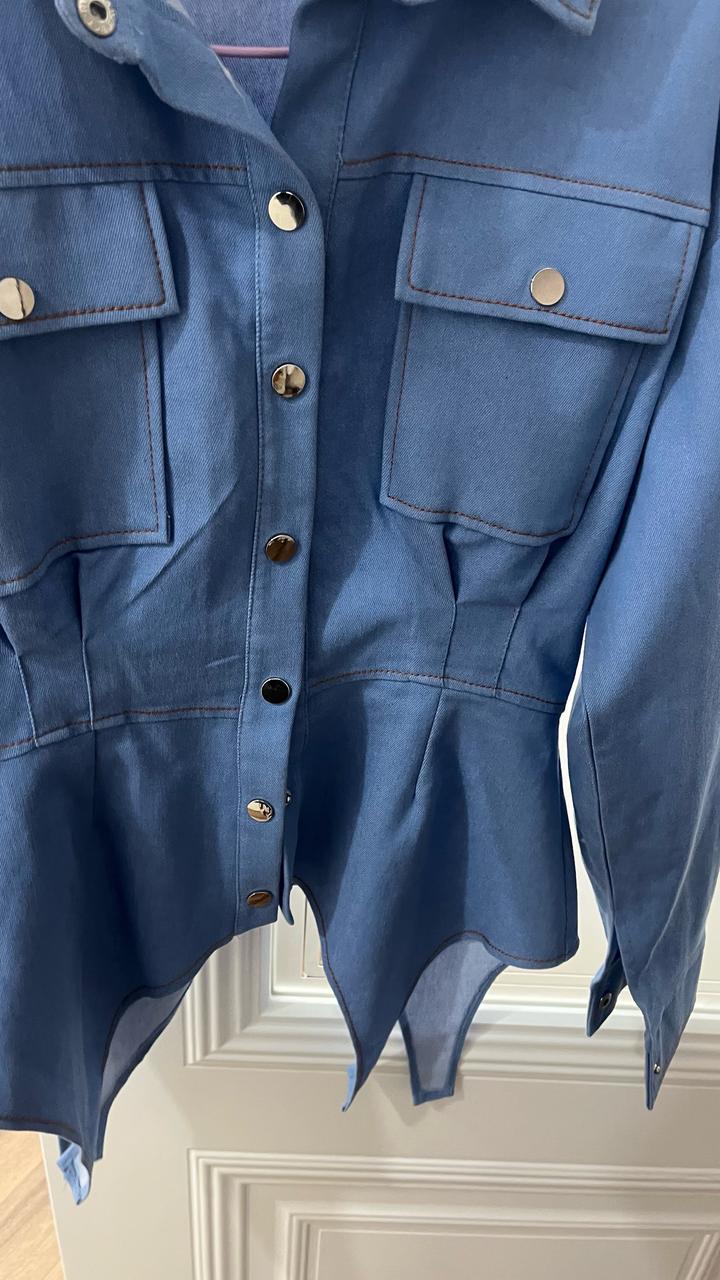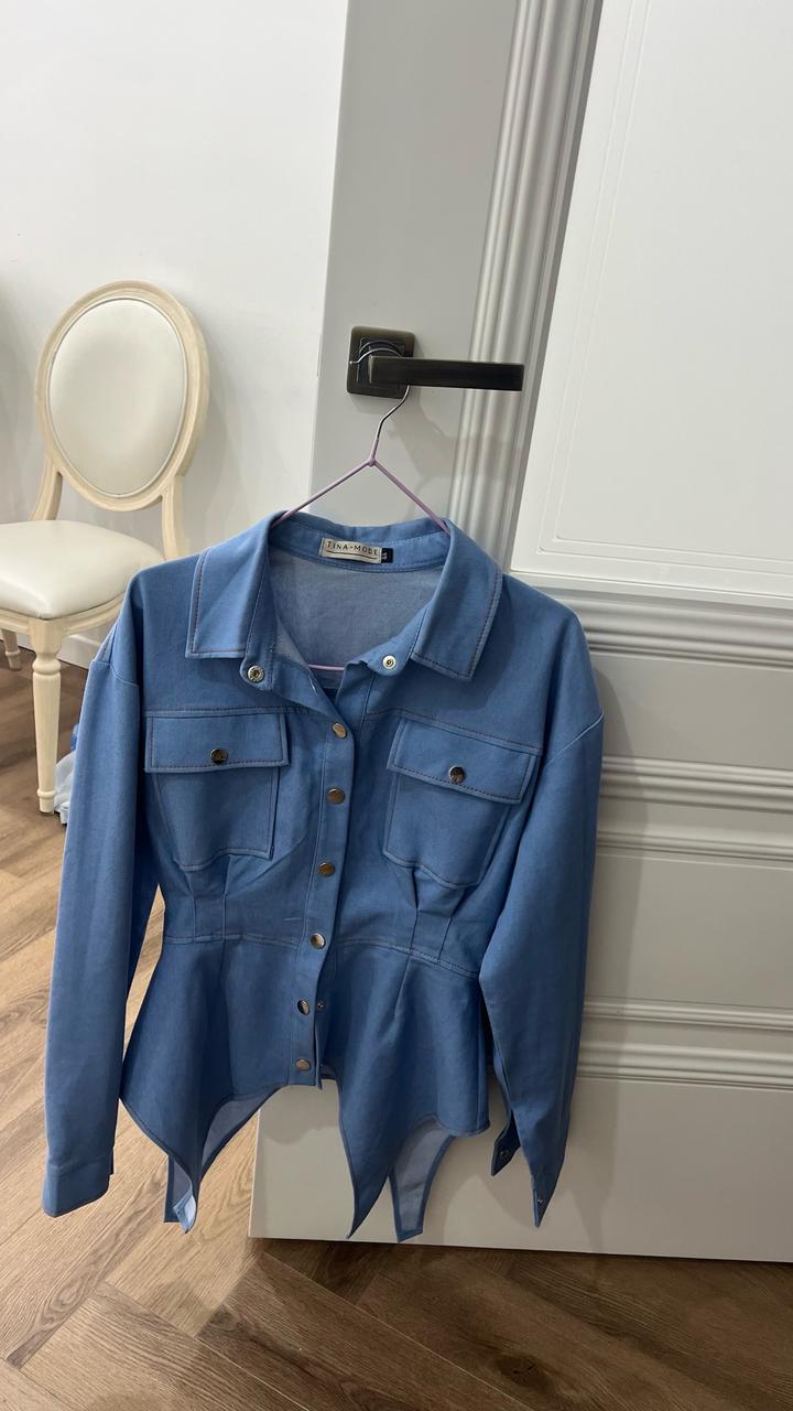 Джинсовая рубашка с баской,очень необычная и подходит так и с брюками так и легинсами Артикул: 555577