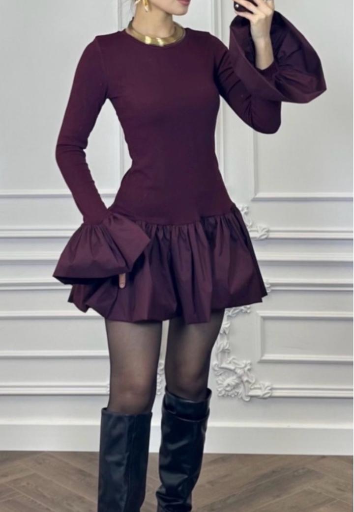 Элегантное мини-платье в бордовом цвете с трендовой юбкой-баллоном и эффектными рукавами-воланами. Состояние — абсолютно новое, не ношеное. Дизайн платья позволяет легко сочетать его с разными украшениями для создания уникальных образов. Размер М, но также хорошо подойдет и к S. Артикул: 555595