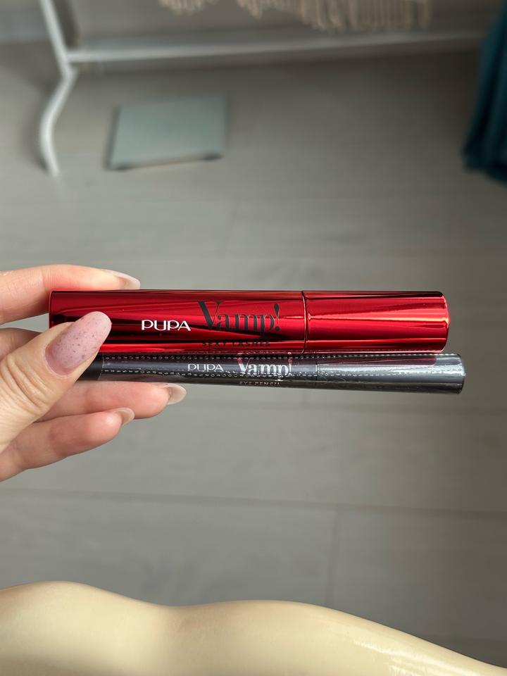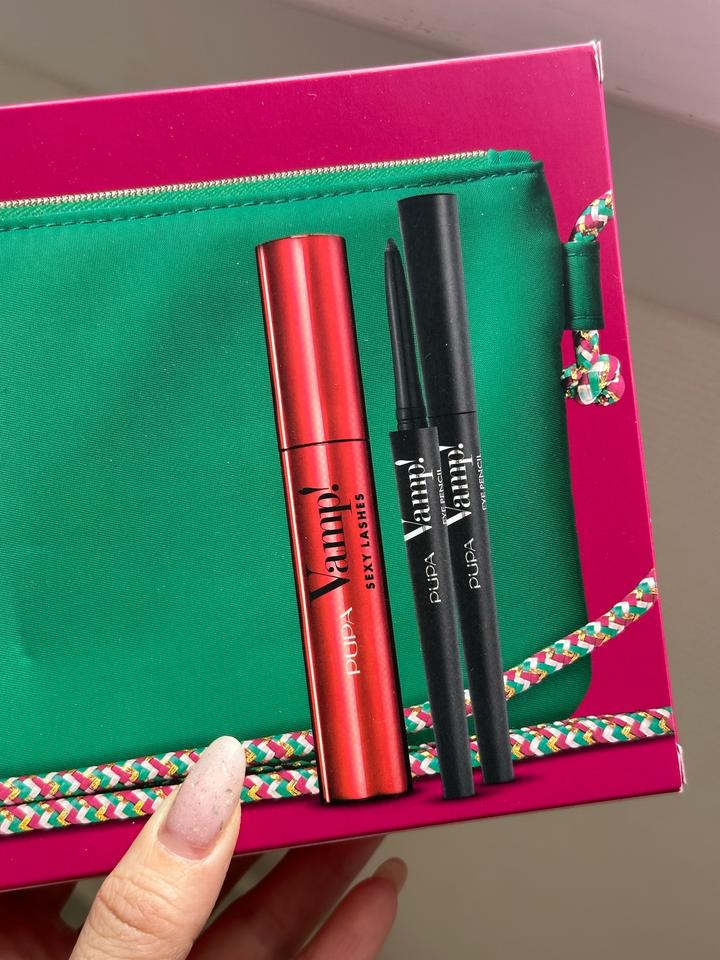 Набор тушь для ресниц и карандаш для бровей, косметичка-