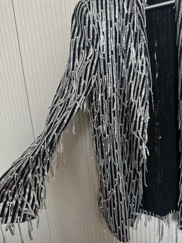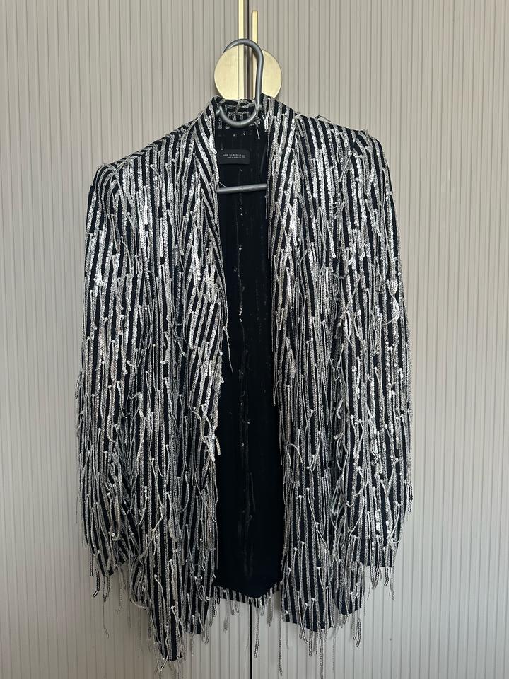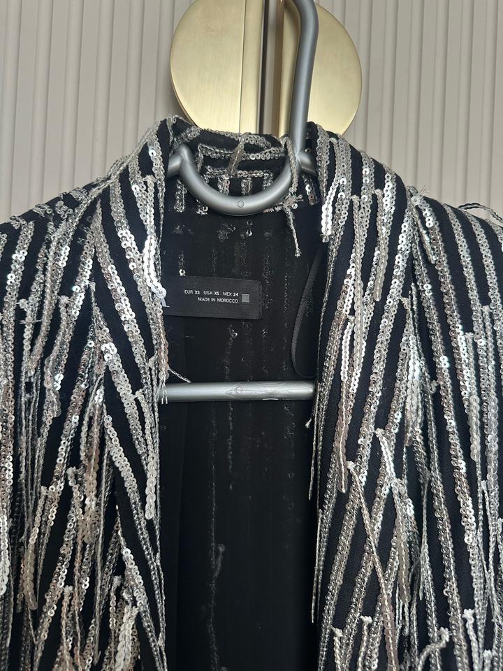 Пиджак Zara блестящий, усыпан пайетками, в очень хорошем состоянии, одевали пару раз, размер XS/S💕 Артикул: 555706