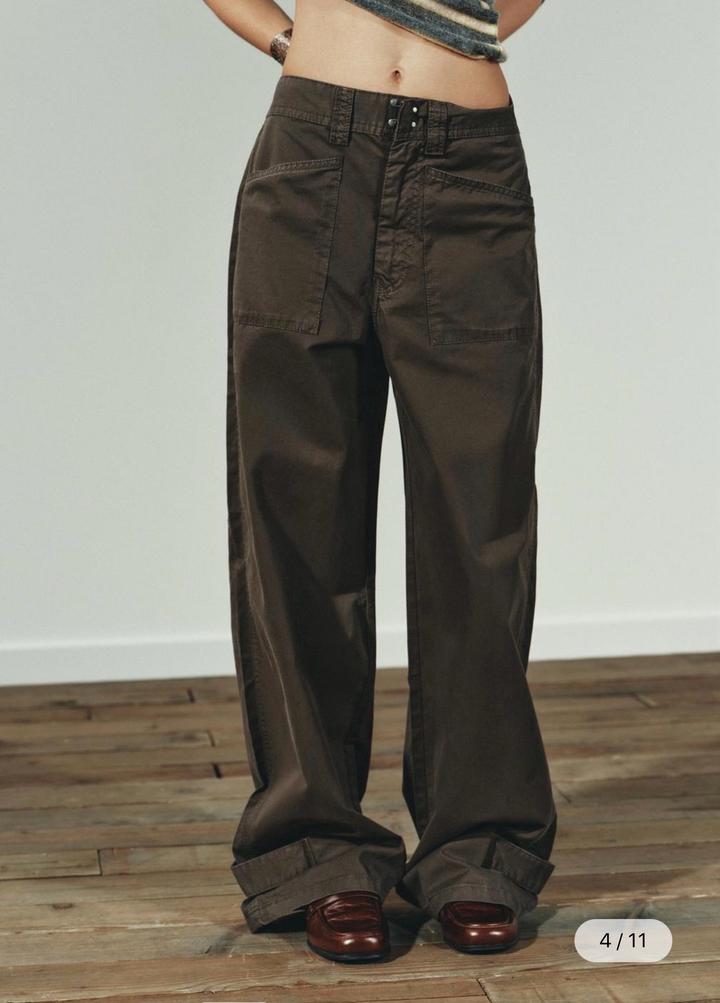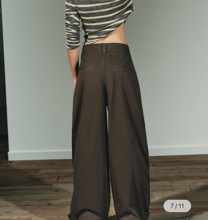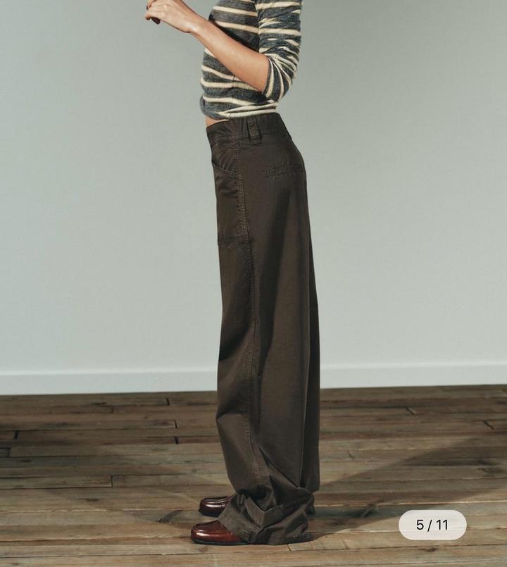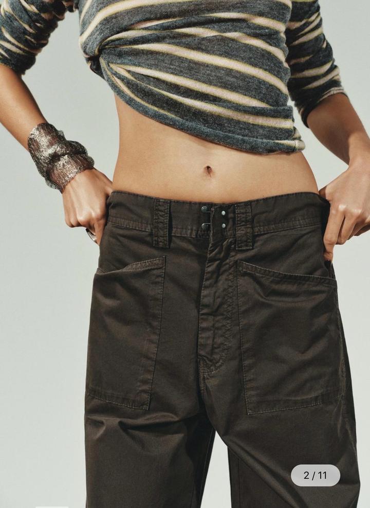 Новые брюки-карго Zara Размер М (40) Цвет шоколадный Брюки средней посадки со шлевками. Накладные карманы спереди и прорезные карманы сзади. Прямые брюки с регулируемым низом на кнопках. Застежка-молния и металлический крючок спереди. Покупались за 28.990 Артикул: 555714