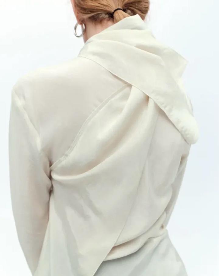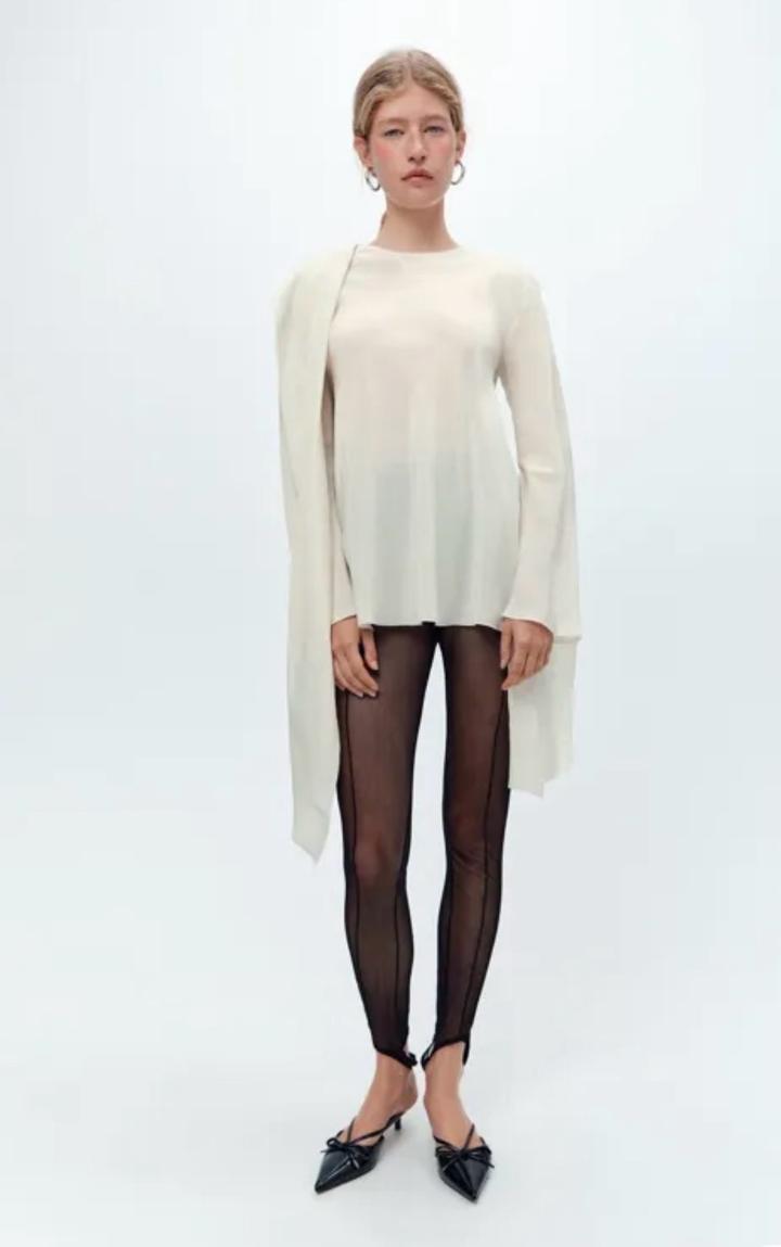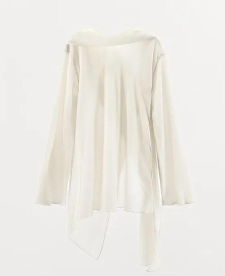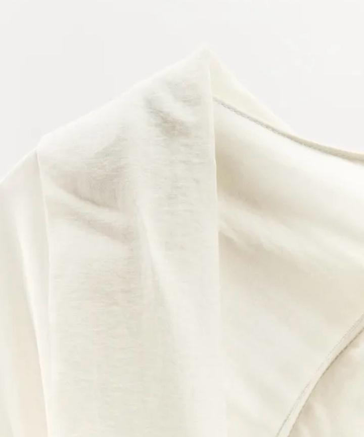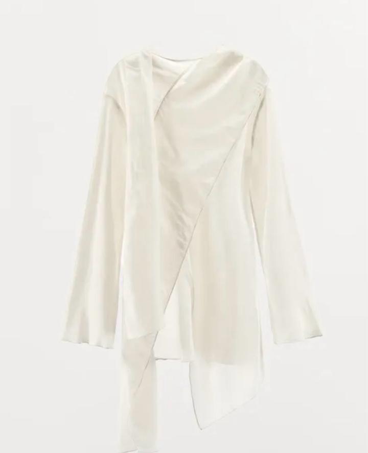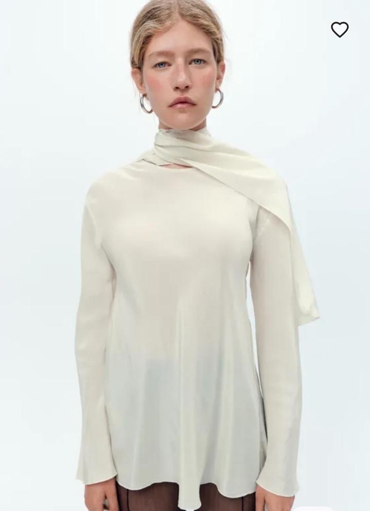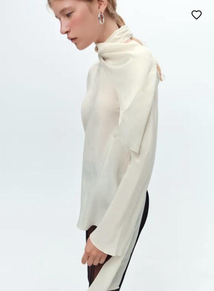 Новая блуза Zara Размер L, но маломерит на М Цвет экрю Блуза со скрещенными на спине деталями, с круглым вырезом и бантом из той же ткани. Длинные расклешенные рукава. Запáх сзади, асимметричный низ. Смесовая ткань, хлопок и 52 % вискозы за 35.990 Артикул: 555768