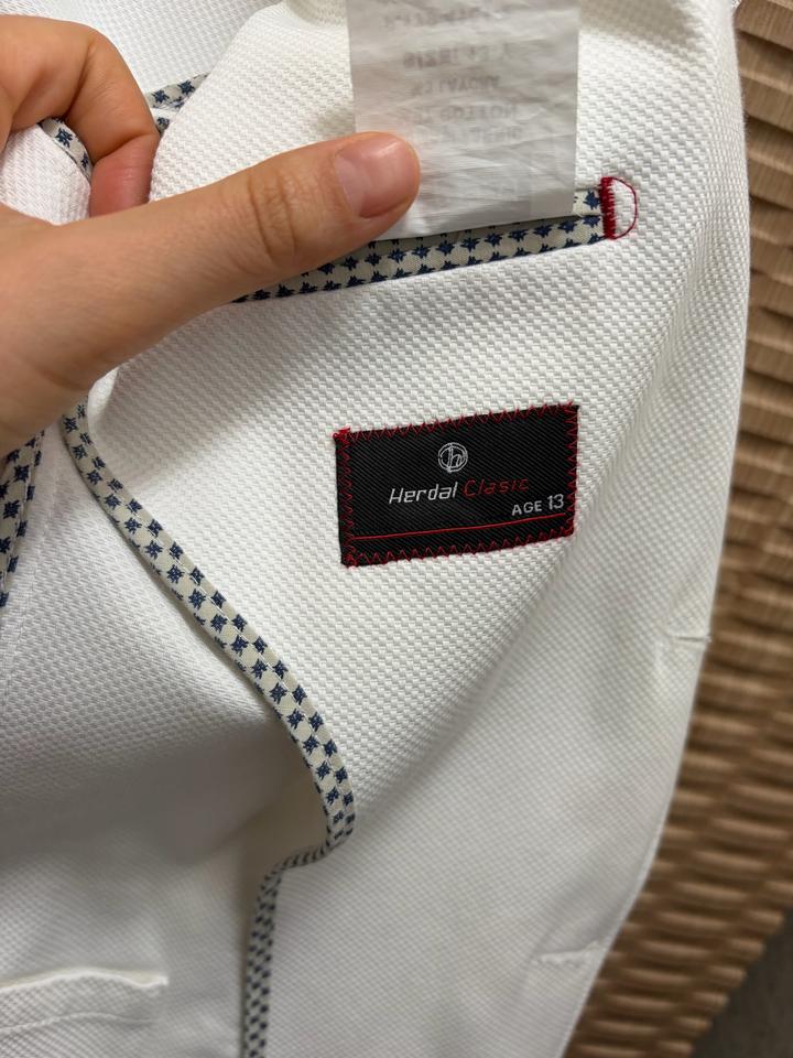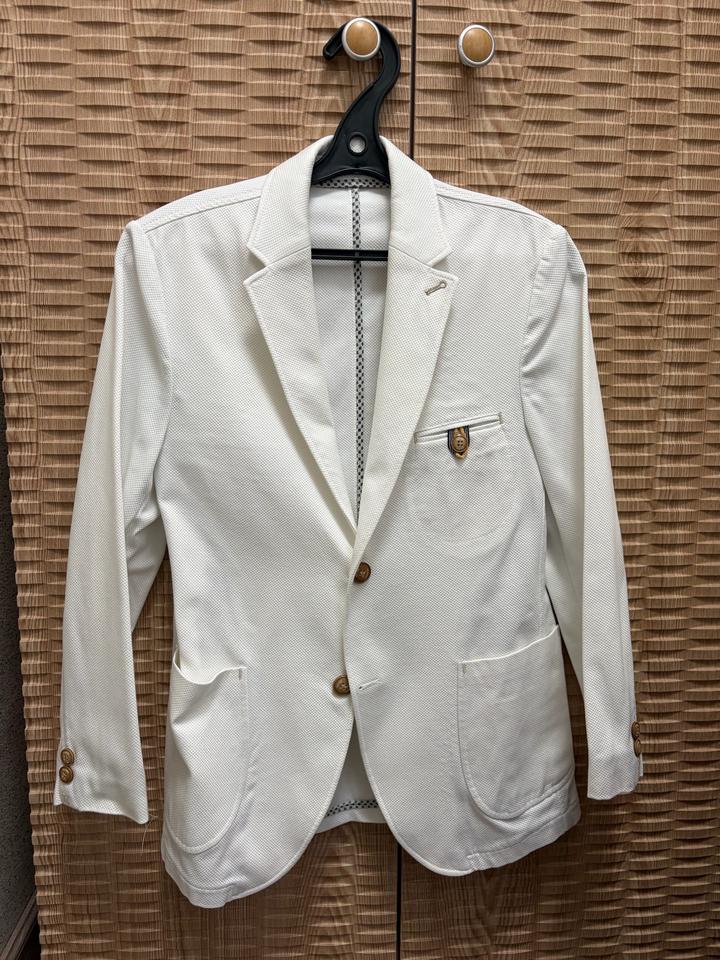 Белый пиджак нарядный на мальчика Состояние после химчистки В носке один раз Размер 164 Артикул: 555895