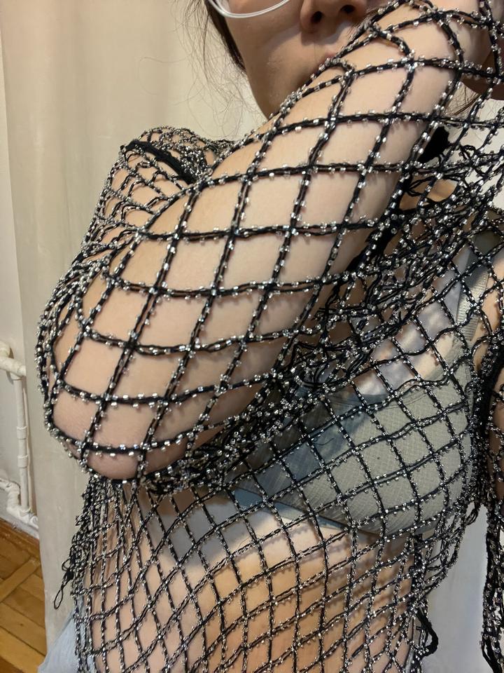 Из бисера, достаточно хрупкое изделия, надевалось пару раз. Требуется ручная стирка. Кое-где (не заметно) оторвались бусины Артикул: 556015