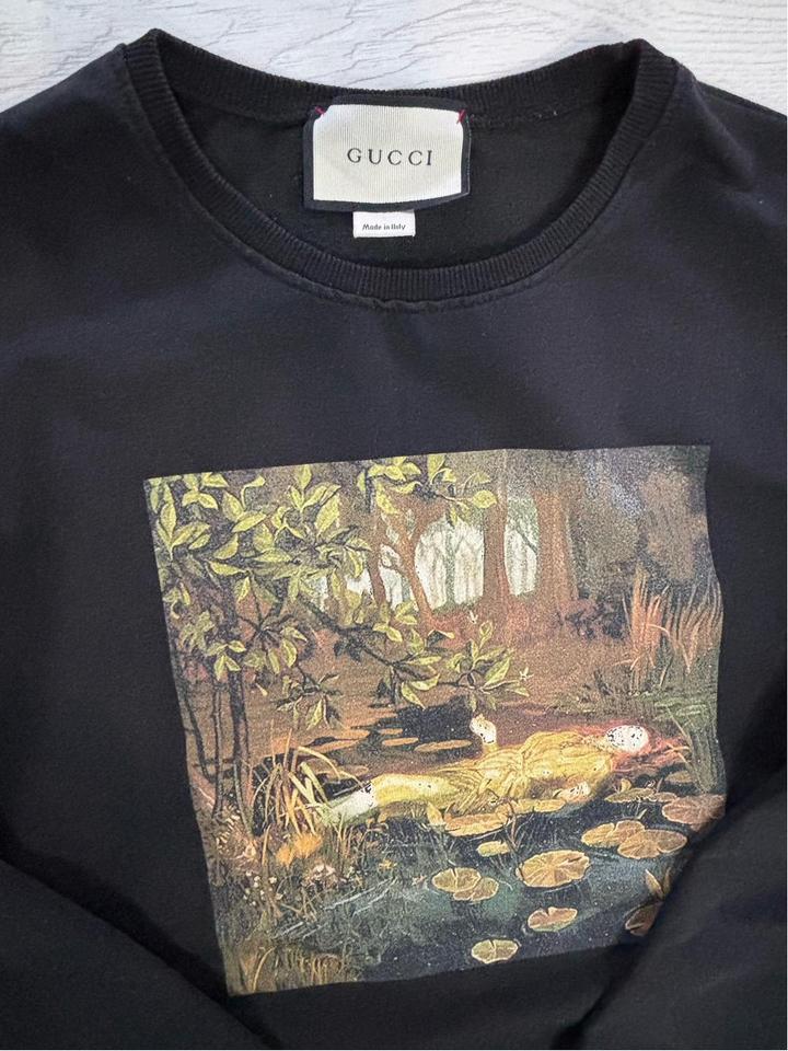 Оригинал любые проверки код есть на фото от Gucci свитшот привезен из Европы написано М но маломерит на S или даже Xs чтобы свободнее был смотря кто как любит носить необычный стиль для тех кто любит выделиться принт целый он сам по себе так нанесен такими красками и в в таком стиле можете загуглить Артикул: 556019