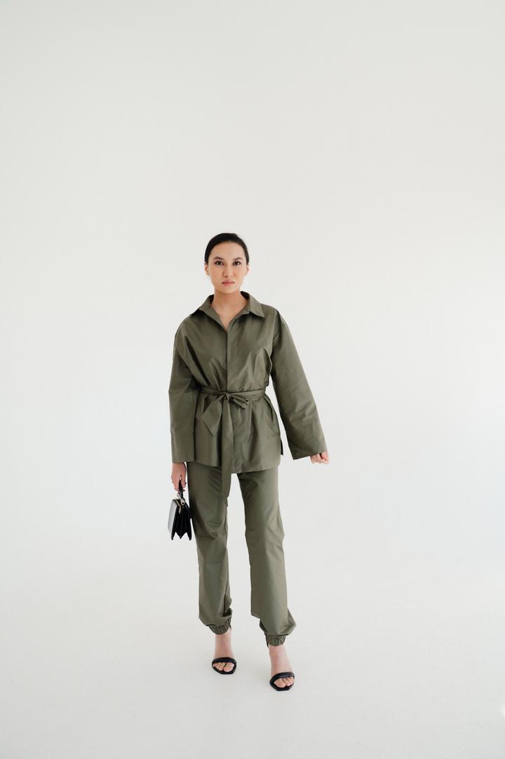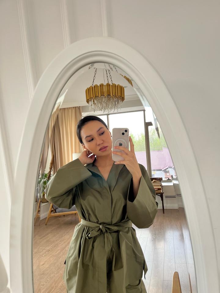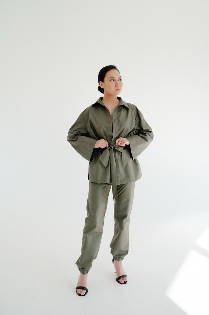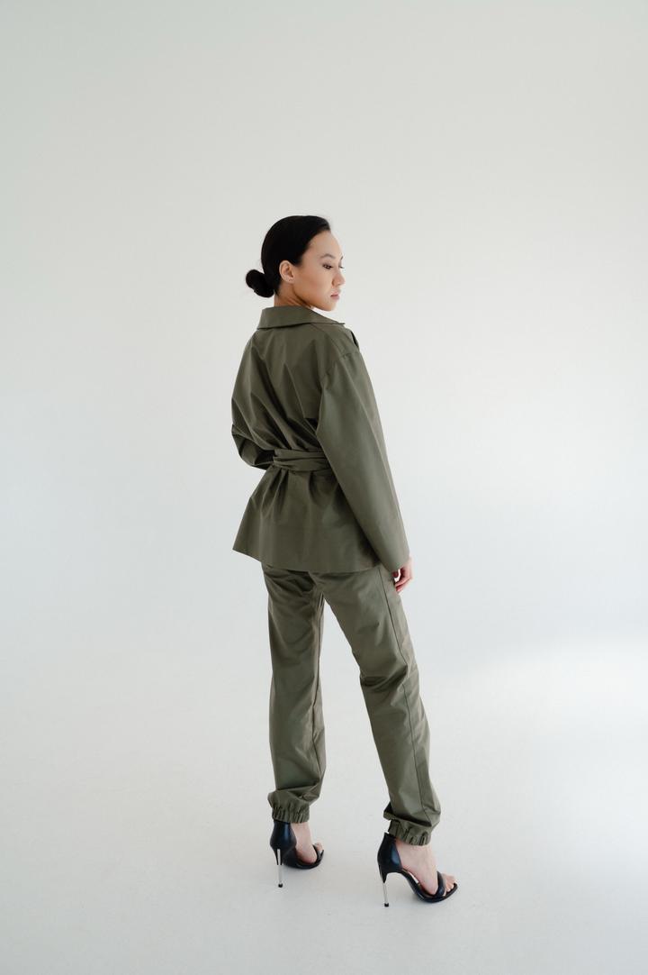Хлопковый( похож немного на курточный материал) костюм цвета хаки. Идеально подходит для весеннего и осеннего периода. Можно носить на повседневной основе и так же на выход Артикул: 556028