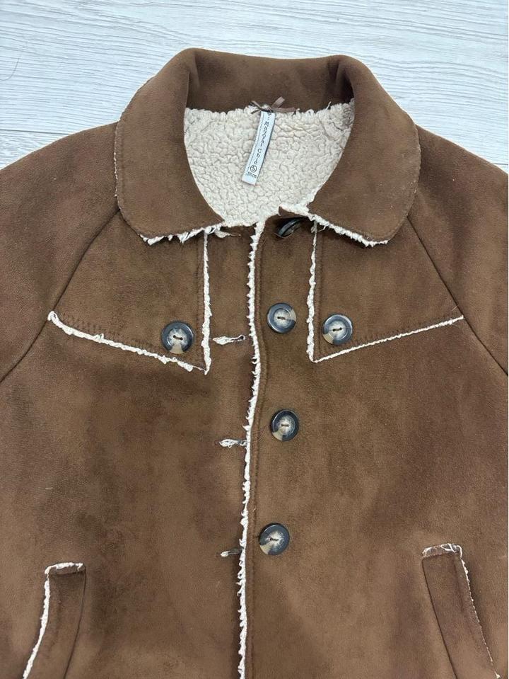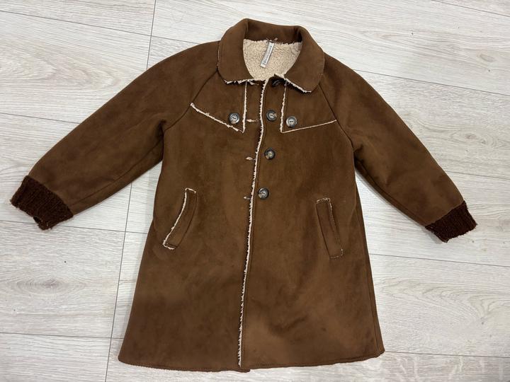 На 110-116 см от детского бренда mayoral в красивом коричневом цвете внутри пенка шерстка мягкое и уютное для вашей дочи на теплую погоду весной и осенью Артикул: 556180