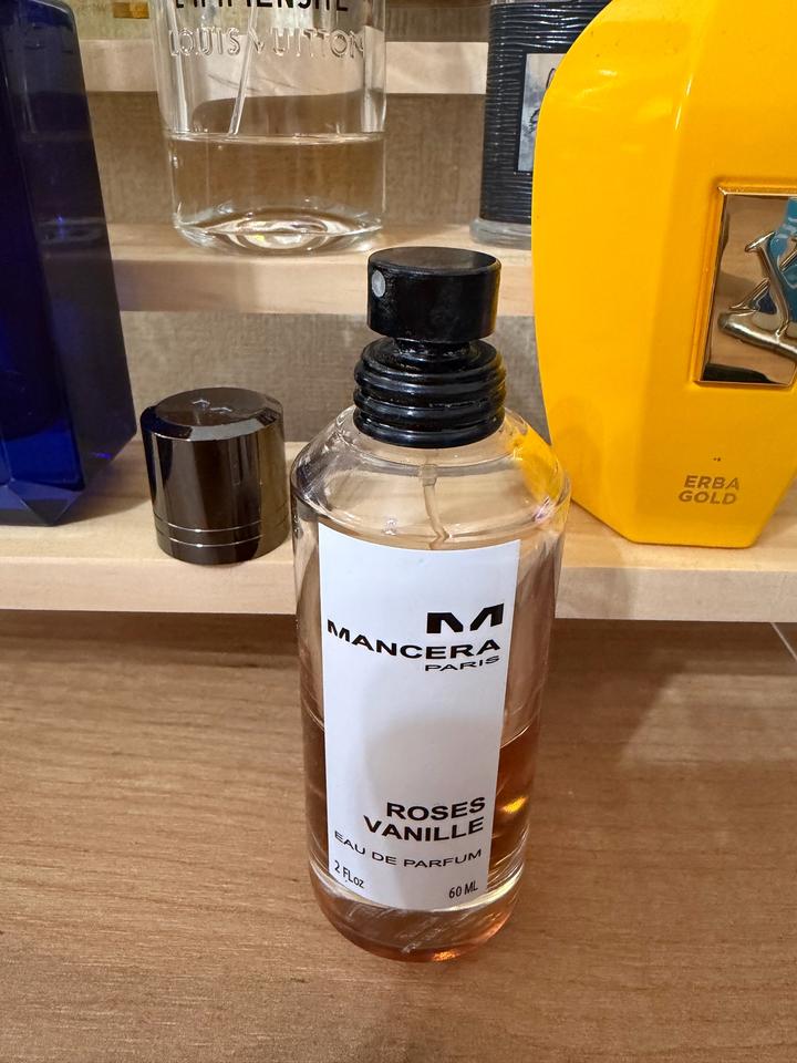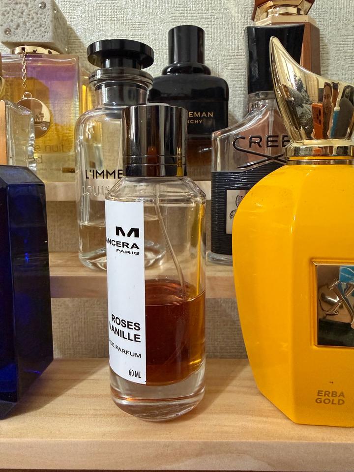 парфюмерной воды Mancera Roses Vanille объемом , чуть меньше половины флакона , сам флакон 60мл, осталось 20-25мл Характеристики аромата: Бренд: Mancera Тип: Парфюмерная вода (Eau de Parfum) Группа: Восточные гурманские Основные ноты: Роза, ваниль, белый мускус, итальянский лимон, кедр Артикул: 556216