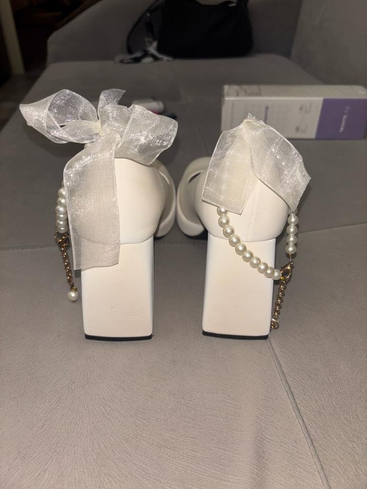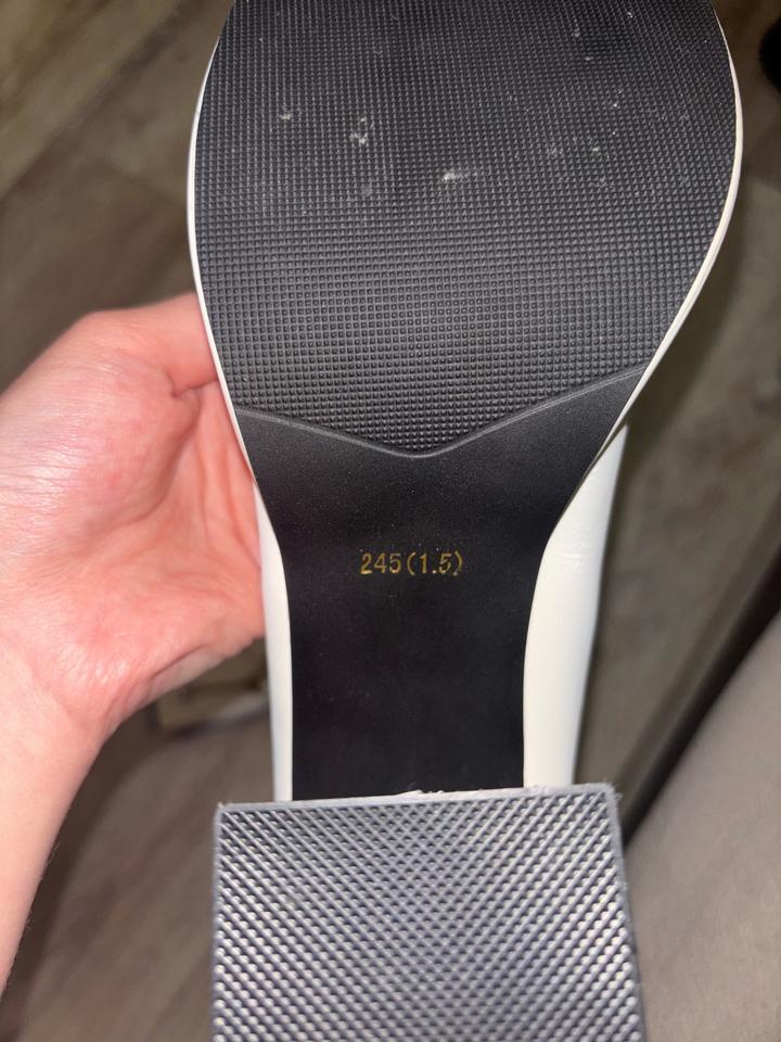 идеально для выпускного! 24,5 см ( по факту 38,5 размер), совершенно новые с коробкой, без дефектов, красивого молочного цвета, удобные, каблук 8 см не подошел размер( Артикул: 556320
