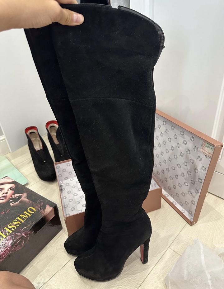 Замшевые ботфорты (натуральная замша) Зима ( европейка) мех натуральный Замша в отличном состоянии, каблук тоже 37 размер Удобные( небольшой скрытый каблук) Артикул: 556477