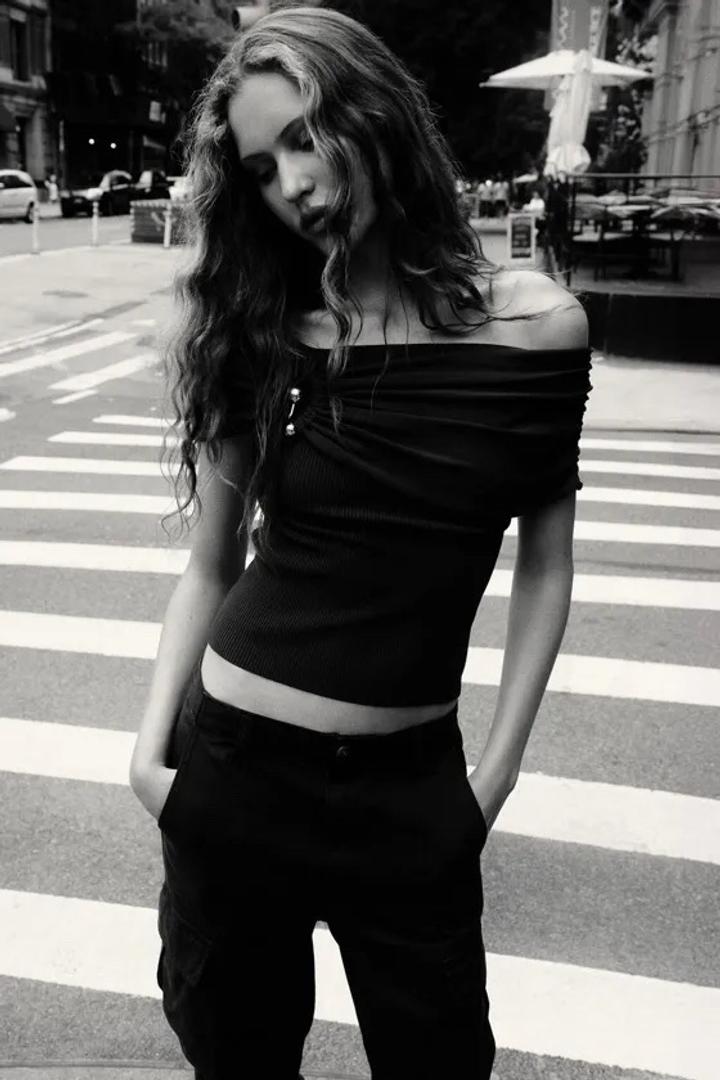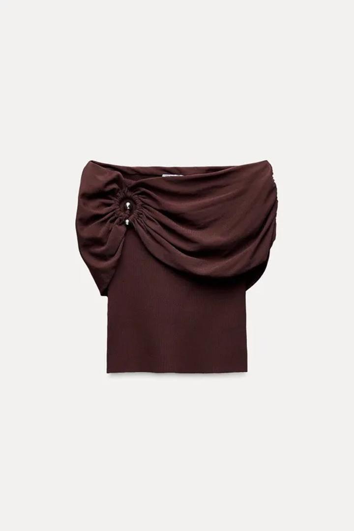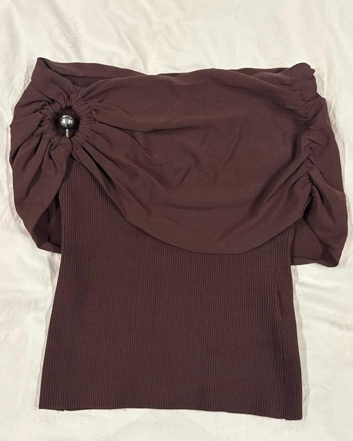 Трикотажный топ с открытыми плечами и металлическим кольцом, размер S Артикул: 556509