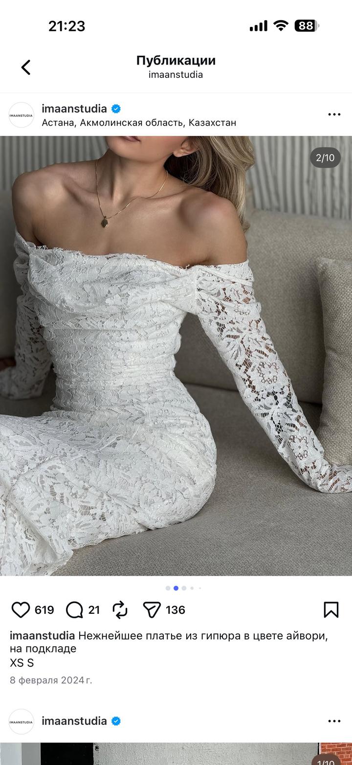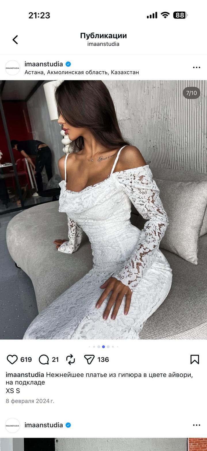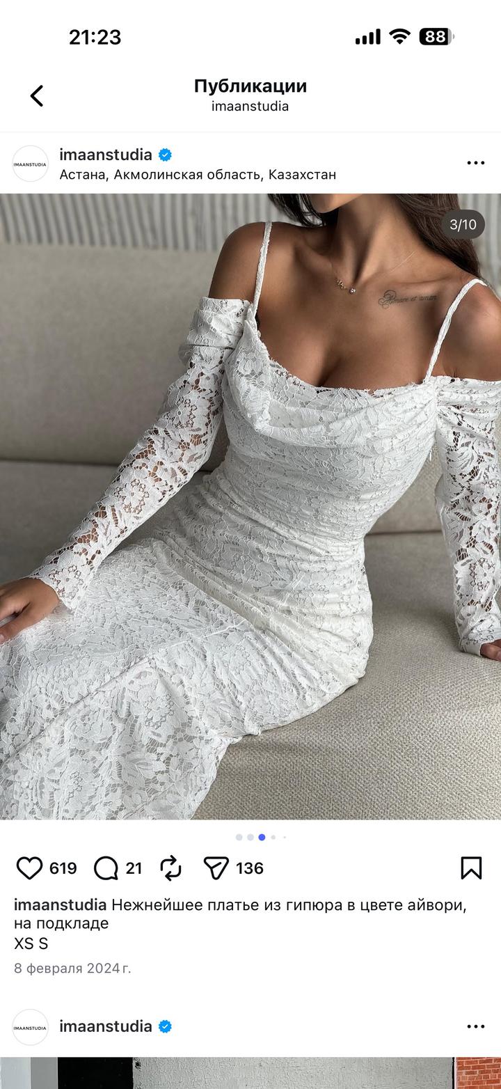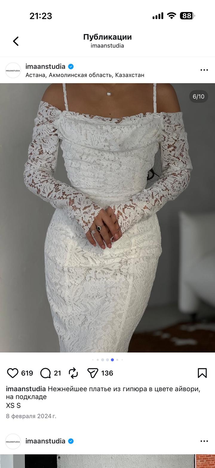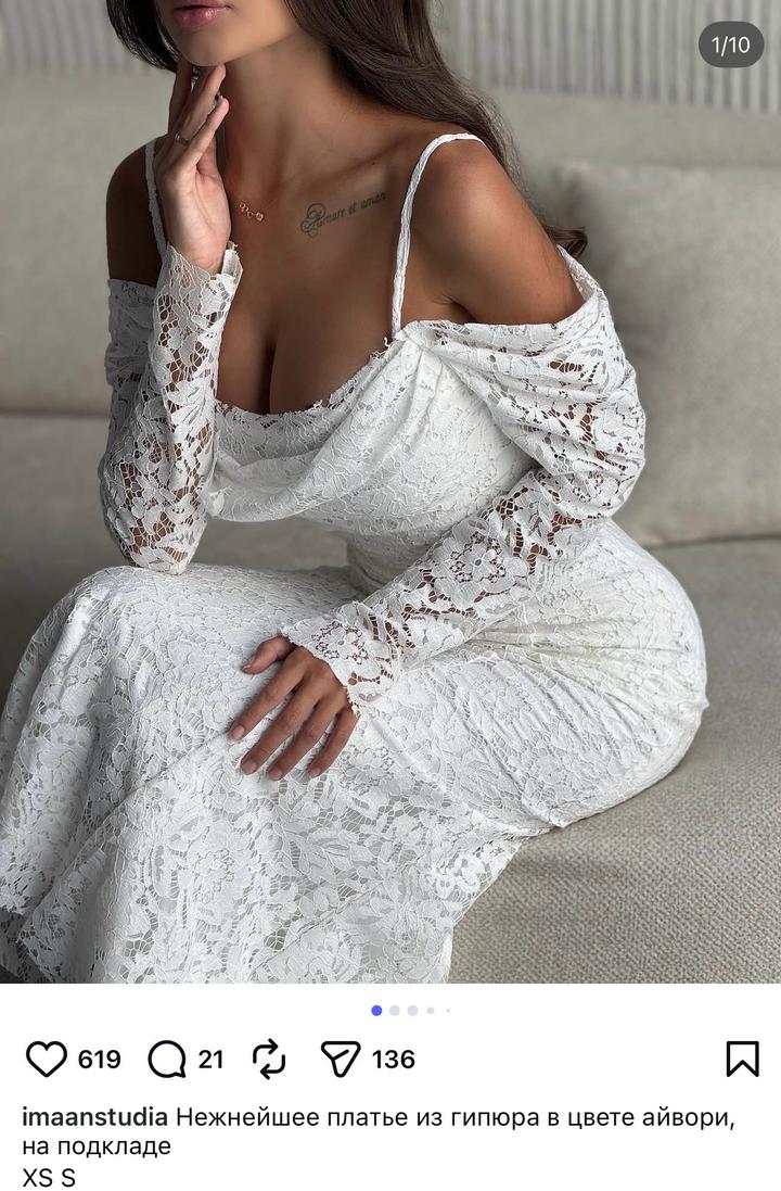 Нежное платье из гипюра Размер М, но ушивала под хс-с До щиколотки длина Один раз надевала Как новое Артикул: 556534