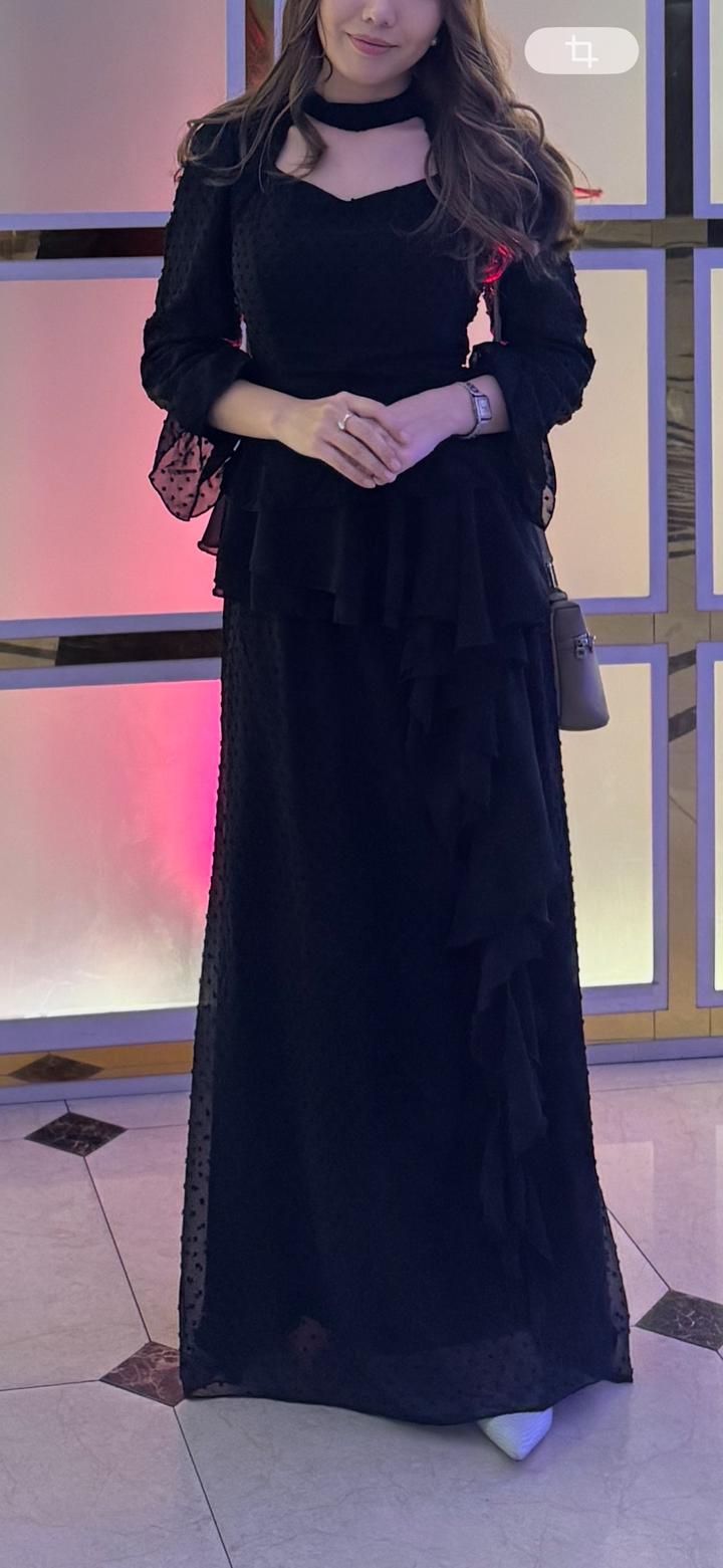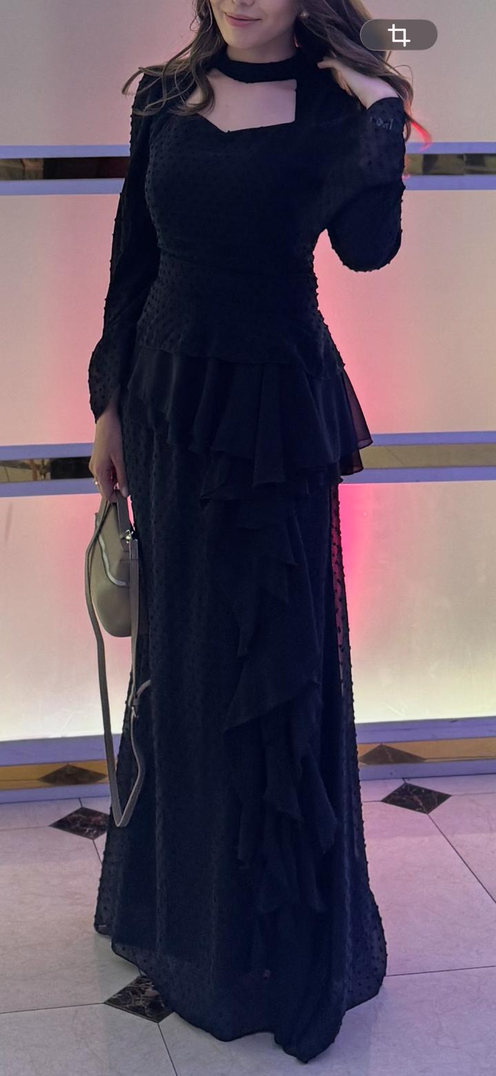 Черное длинное платье с баскойS