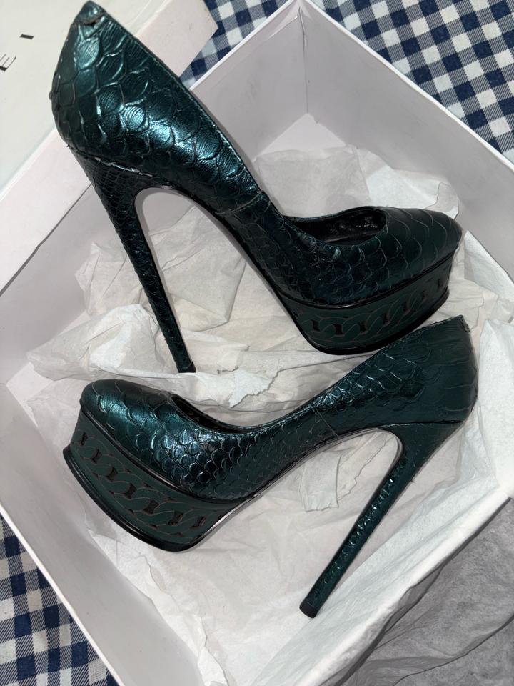 Крутая обувь известного женского бренда. Материал будто чишуя рептилий, покупалось , привезены из Европы . К сожалению после рождения ребенка , не лезут и уже не смогу носить такую красоту , хотя очень люблю обувь на высоких каблуках и обувь именно такой формы . На сайте видите цены , шикарная модель и цвет очень красивый , очень удобные за счет платформы . Надевала всего один раз Артикул: 556932