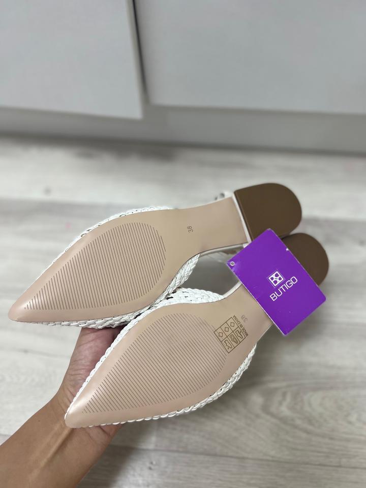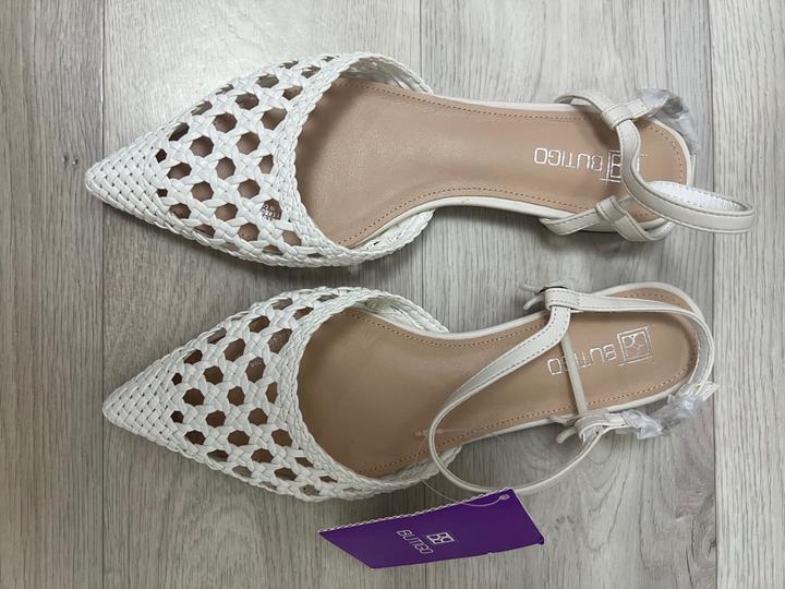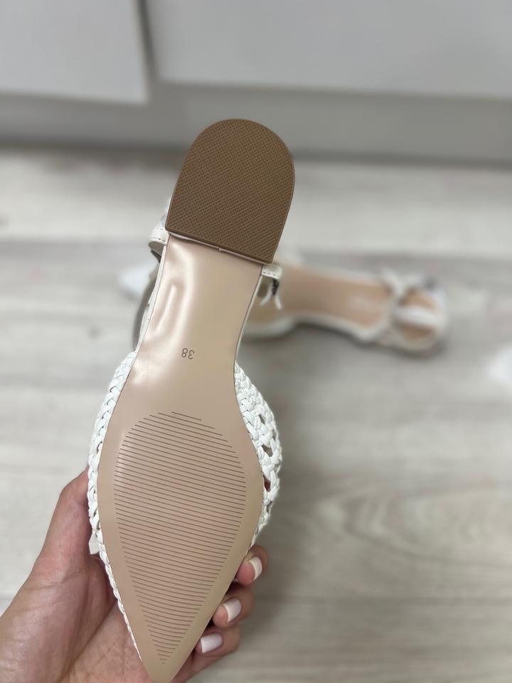 Белые босоножки на низком каблуке38