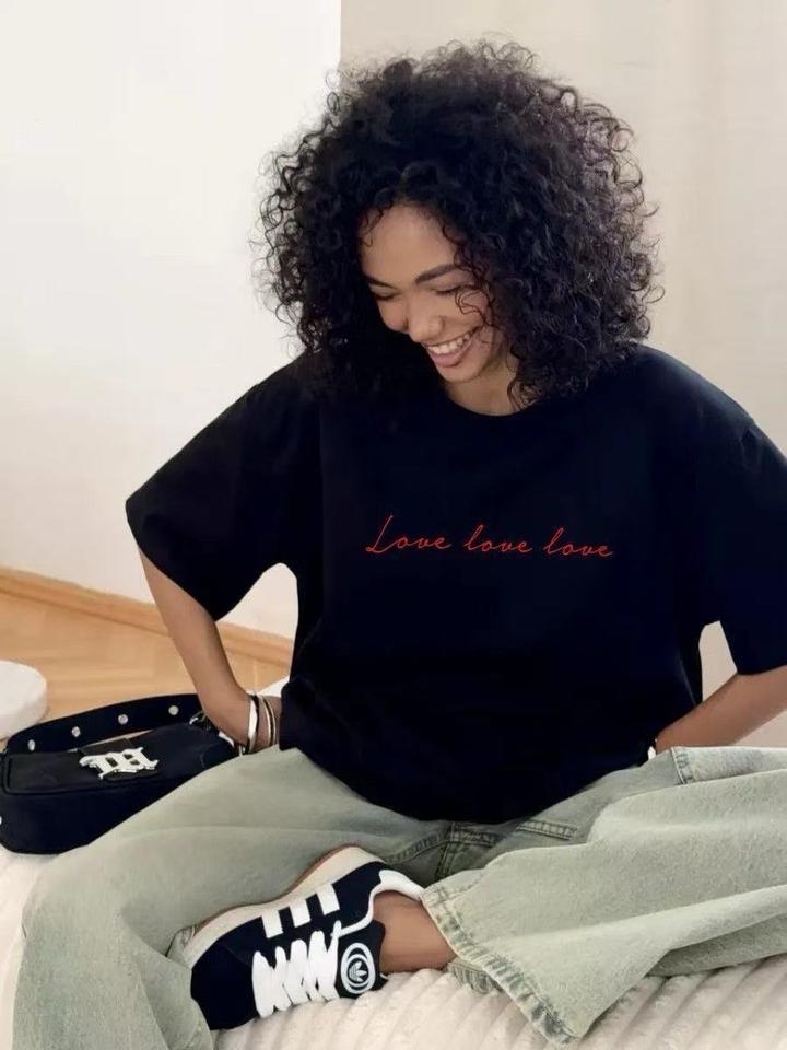 Черная футболка с надписью Love Размеры М Л Артикул: 556949