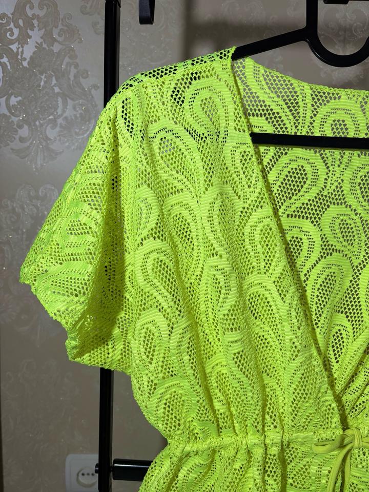 Размер one size (подойдёт на XS, S, M) Надевала 2–3 раза, состояние как новое. Лёгкое, полупрозрачное, идеально на купальник. Есть пояс, можно регулировать по талии. Очень ярко смотрится на загорелой коже. Артикул: 557000