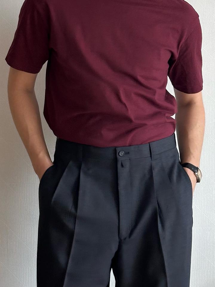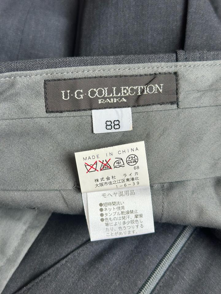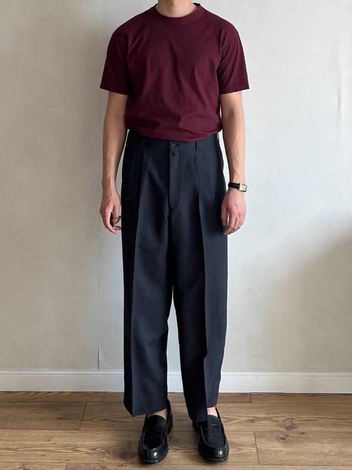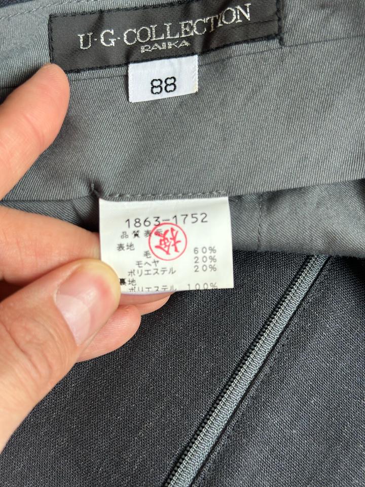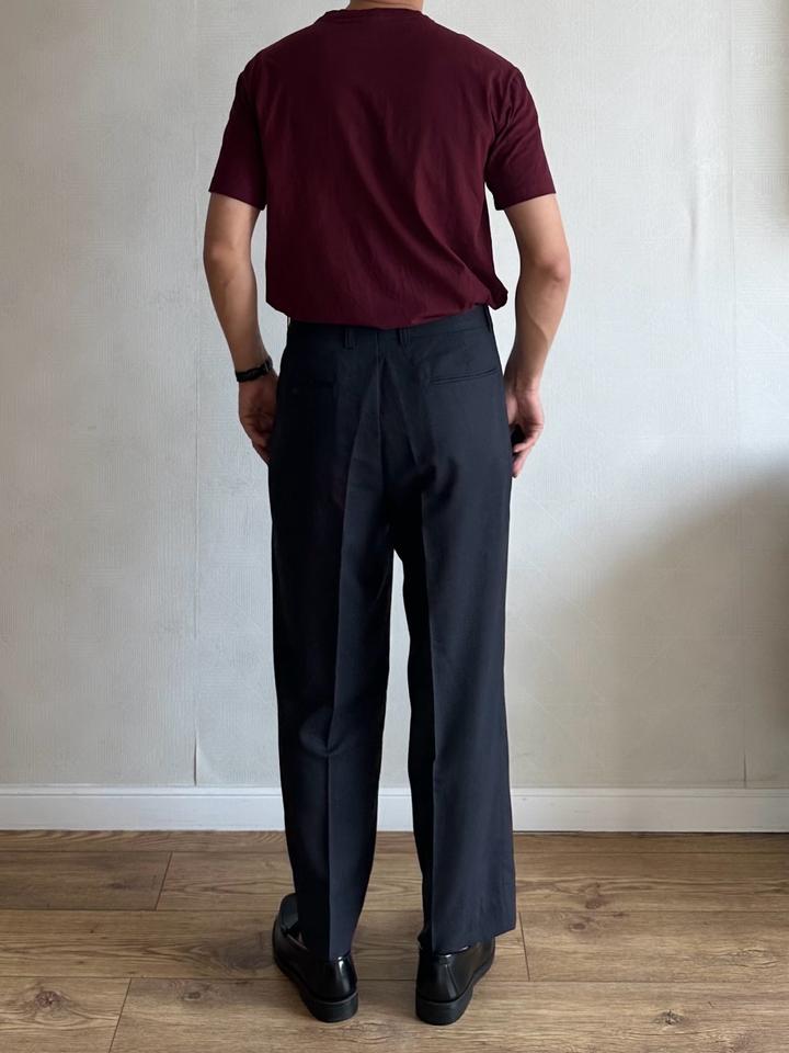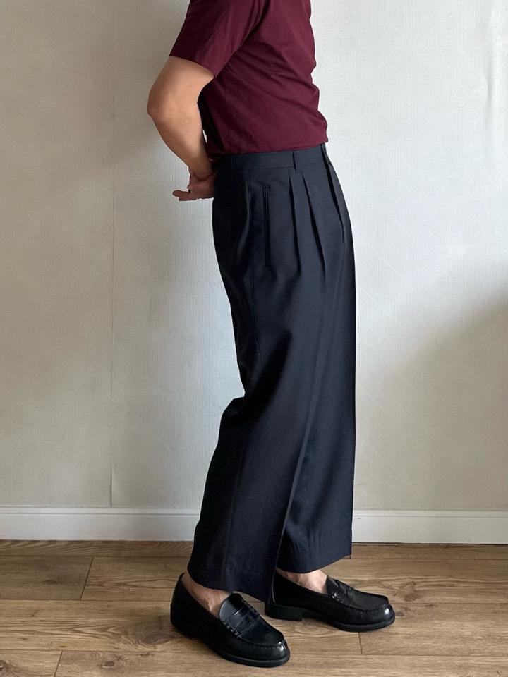 U-G-Collection | L (W34 L30) Широкие брюки с высокой посадкой и с двойными защипами в темном графитовом оттенке. Тонкий материал из 60% шерсти и 40% пэ. Талия 88 Бедра 128 Посадка 33 Выход 24 Длина 100 (запас +3см) Made in China 🇨🇳 Параметры модеди: рост 183, размер М-Л Артикул: 557019